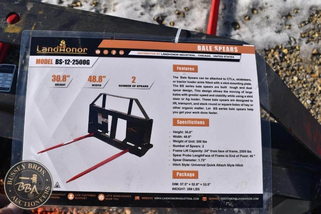 Landhonor Bale Spear Attachment Skid steer mount, double prong, NEW/UNUSED,