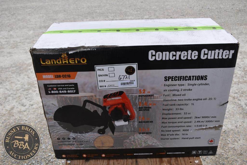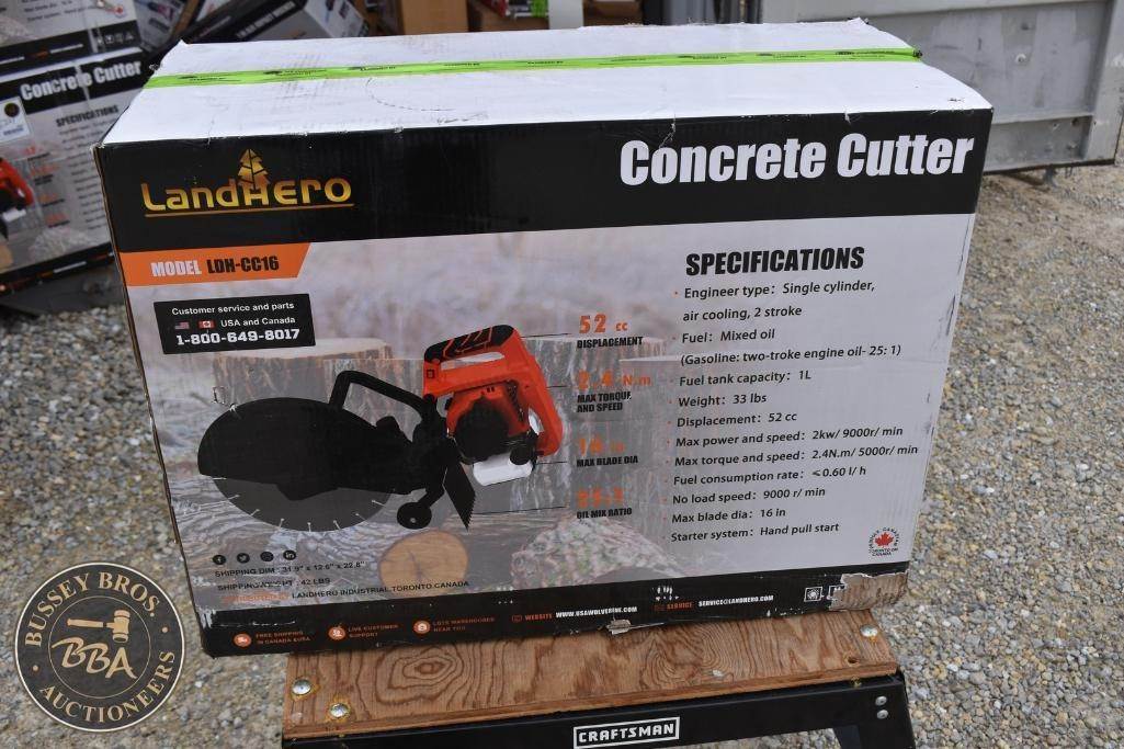 LandHonor Concrete Cutter Gas Engine, two stroke, 16in max blade dia, NEW/UNUSED