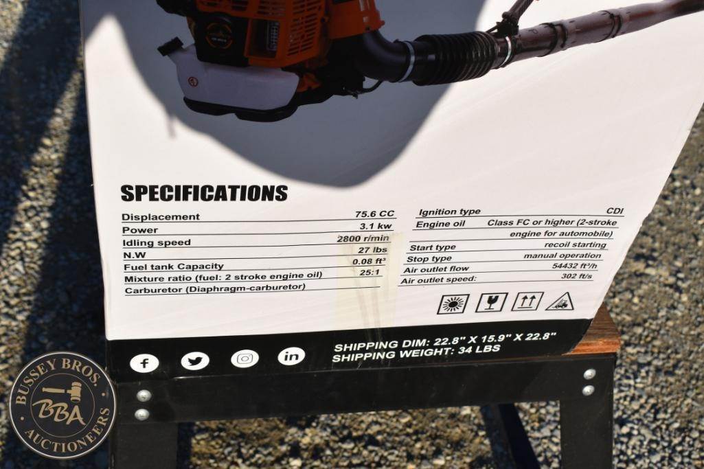 Landhonor LH-LB9510 Leaf Blower, 75.6cc, 3.1kW, CDI engine, 2800 rpm idling speed, 0.8 L fuel tank,
