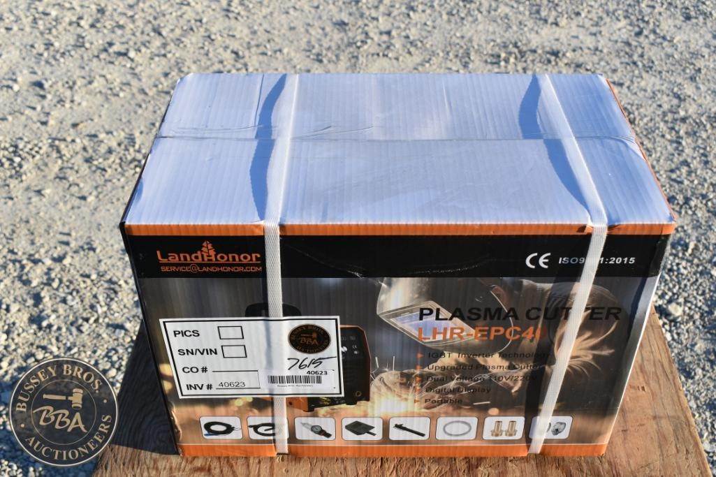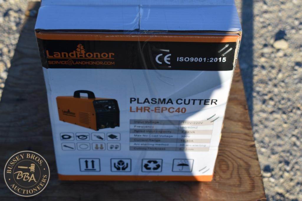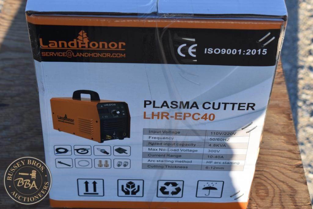 LandHonor LHR-EPC40 Plasma Cutter, 110V/220V, 10-40A, 6.5KVA, 300V max no-load voltage, 60Hz frequency, electric power source, cutting thickness approximately 1/2 inch.