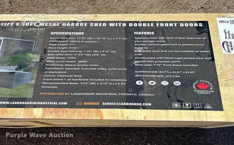 LandHonor LHR-MS1119 garage, Double Doors, Approx. 286 sq. ft, 11' 10" W x 19' 10"L x 7' 7" H,