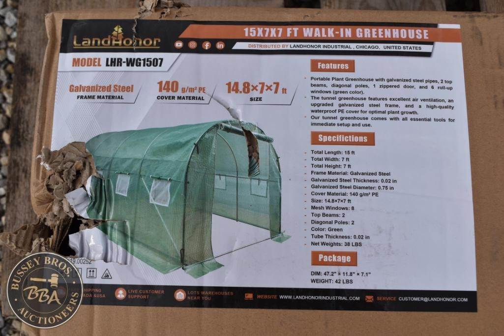 LandHonor LHR-WG1507 Walk-In Greenhouse, 14.8 ft x 7 ft x 7 ft, Galvanized Steel Frame, Plant Greenhouse, Roll-up Zipper Door,