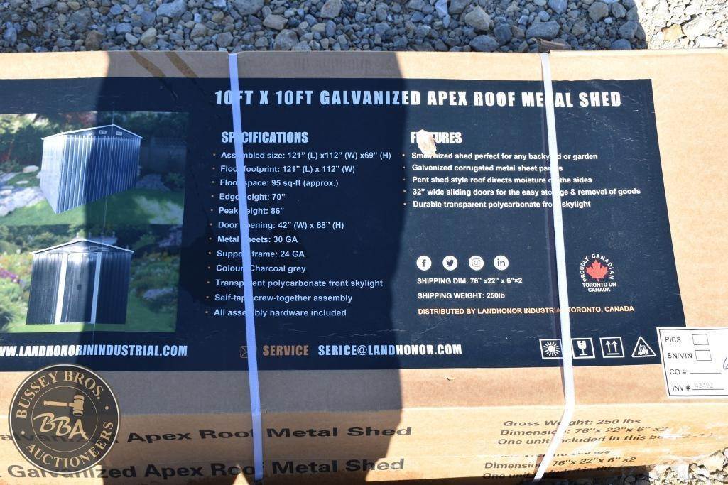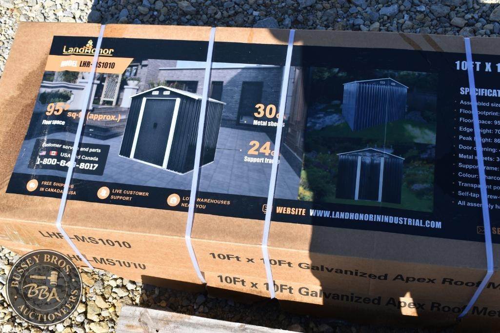 LandHonor Metal Garage Shed Charcoal Grey, 10ft x 10ft size, single door, 24GA steel frame, 30 GA metal sheets, NEW/UNUSED