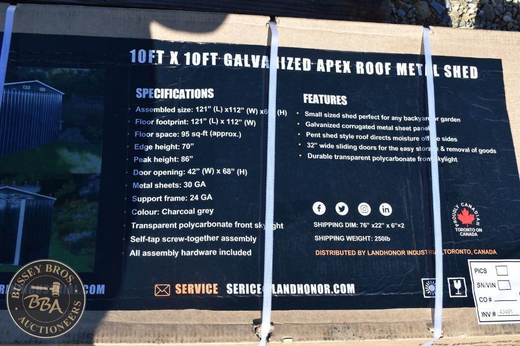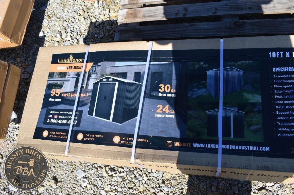 LandHonor Metal Garage Shed Charcoal Grey, 10ft x 10ft size, single door, 24GA steel frame, 30 GA metal sheets, NEW/UNUSED