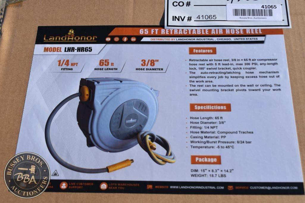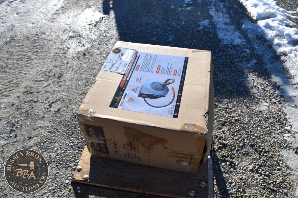 Landhonor Retractable Air Hose Reel 1/4 inch fittings, 65 Ft hose Length 3/8 hose diameter NEW/UNUSED