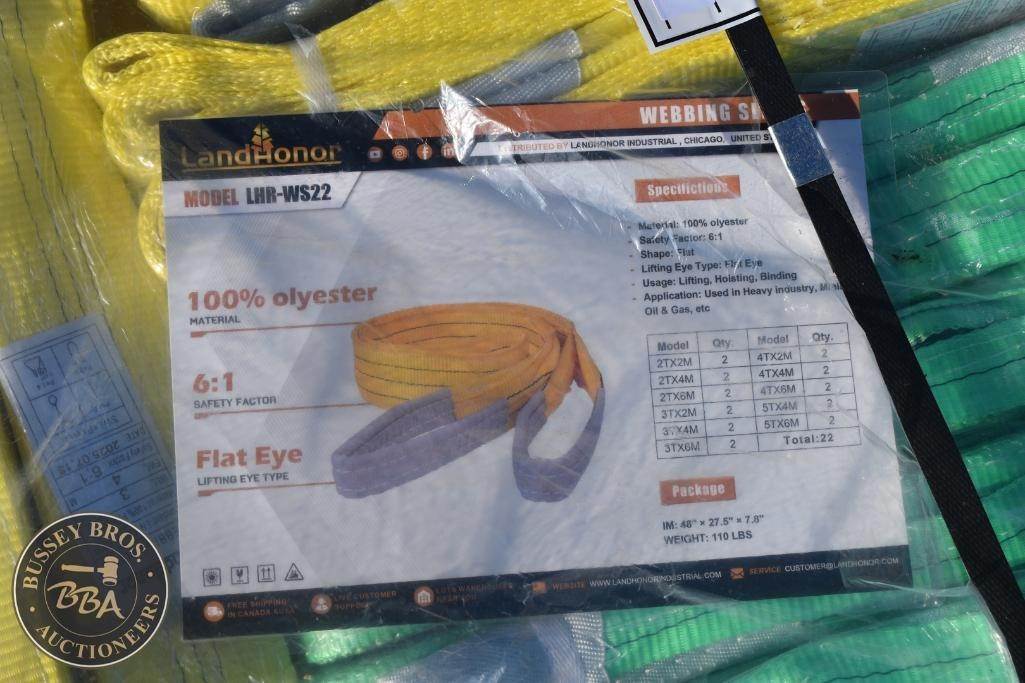 Landhonor Webbing Slings lot contains 22 webbing slings of various sizes, NEW/UNUSED
