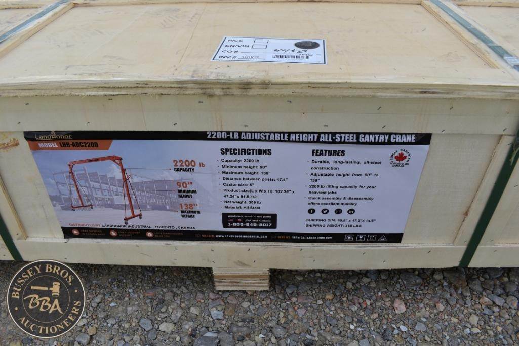 Landonor AH-862200 Adjustable Height All-Steel Gantry Crane, Capacity: 2200 lb,