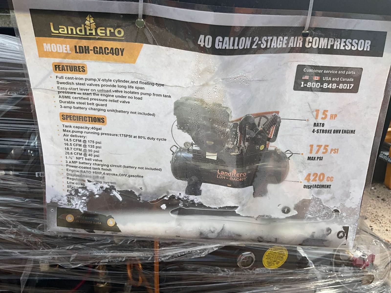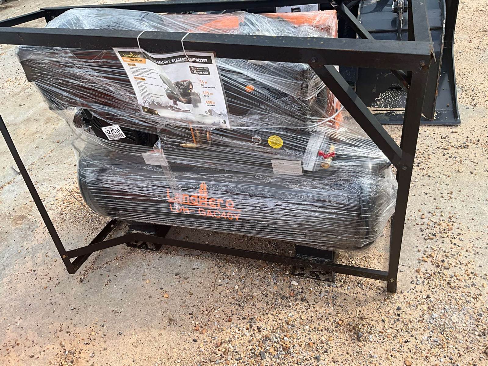UNUSED 20 CFM STATIONARY AIR COMPRESSOR, GAS, 40 GALLON, 2 STAGE, 15 HP