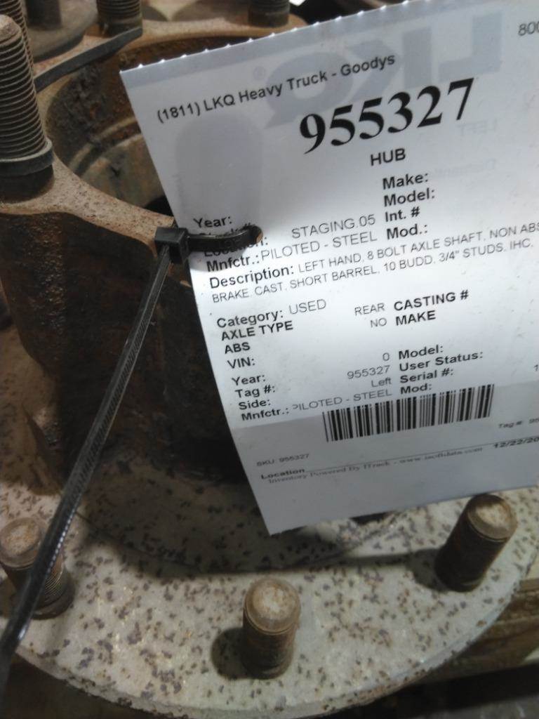 LEFT HAND, 8 BOLT AXLE SHAFT, NON ABS, AIR BRAKE, CAST, SHORT BARREL, 10 BUDD, 3/4" STUDS, IHC,