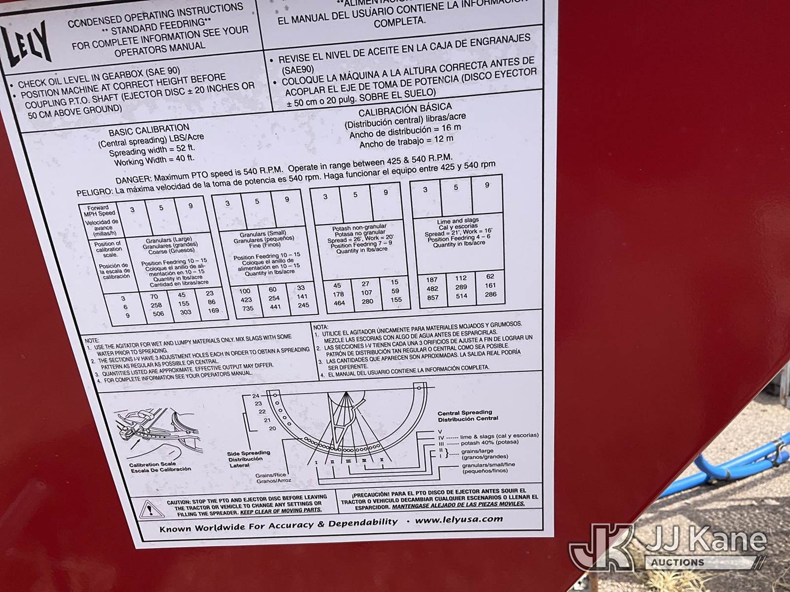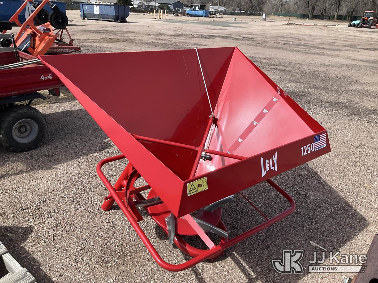 Lely Model L1250 3 Point Mounted Dry Fertilizer/Grass Applicator, New - never used, 930lbs hopper capacity, adjustable spread pattern, spreading accuracy up to 52’ wide. Serial number 23205118106109) (Municipality Owned & Maintained (New) (Operates) NOTE: This unit is being sold AS IS/WHERE IS via Timed Auction and is located in Fountain, CO. For more information & removal arrangements please contact John Larkin @ 720-390-9897. (Buyer is responsible for removal. Assistance by consignor or JJ Kane Auctions is not assured.)