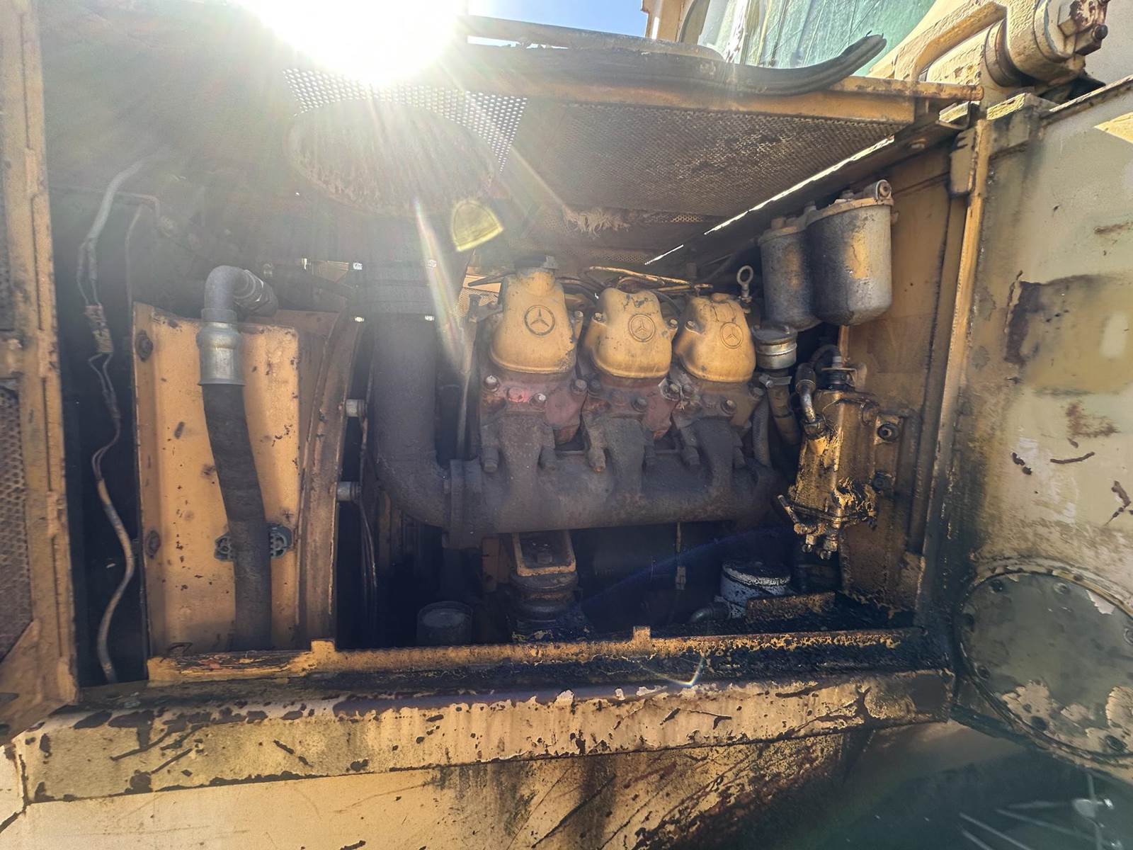 1987 Liebherr LR631B Crawler Loader equipped with a Mercedes OM421 250HP engine and hydrostatic transmission. This heavy-duty crawler loader features an 8 ft bucket, 22” metal tracks, and an enclosed cab with heat, making it ideal for year-round operation. The machine has a solid frame, good structural integrity, and can be started with a jump. Does need a new hydraulic pump for the loader bucket. The Liebherr LR631B has an operating weight of approximately 39,000 lbs and a top operating speed of 6.25 mph.