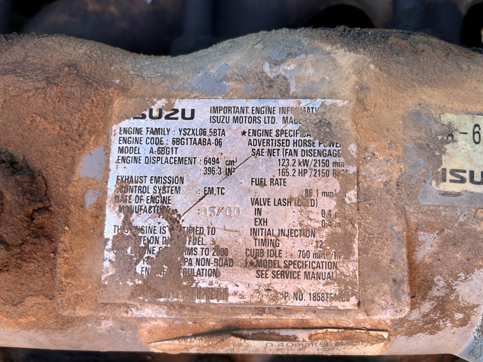Isuzu A-6BG1T Engine