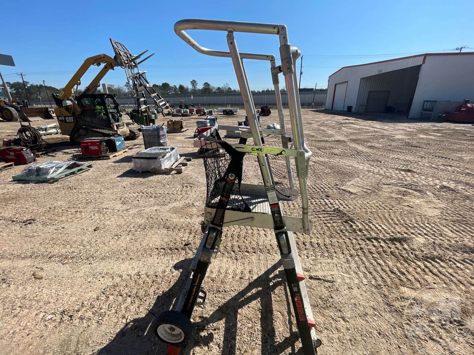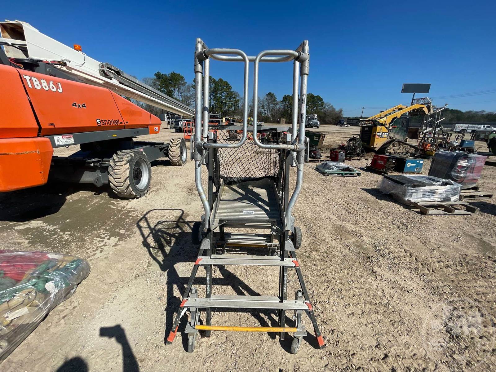 SAFETY CAGE ENCLOSED ELEVATED PLATFORM, WHEELS, 3-5 FT THPE IAA, 3 STEP