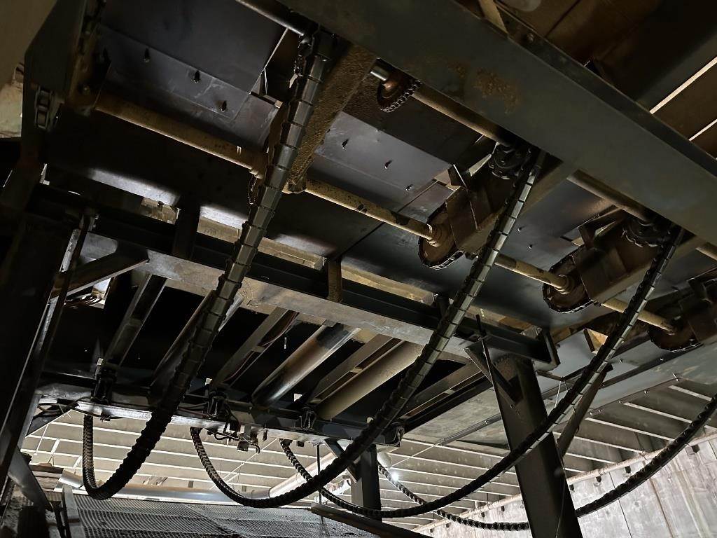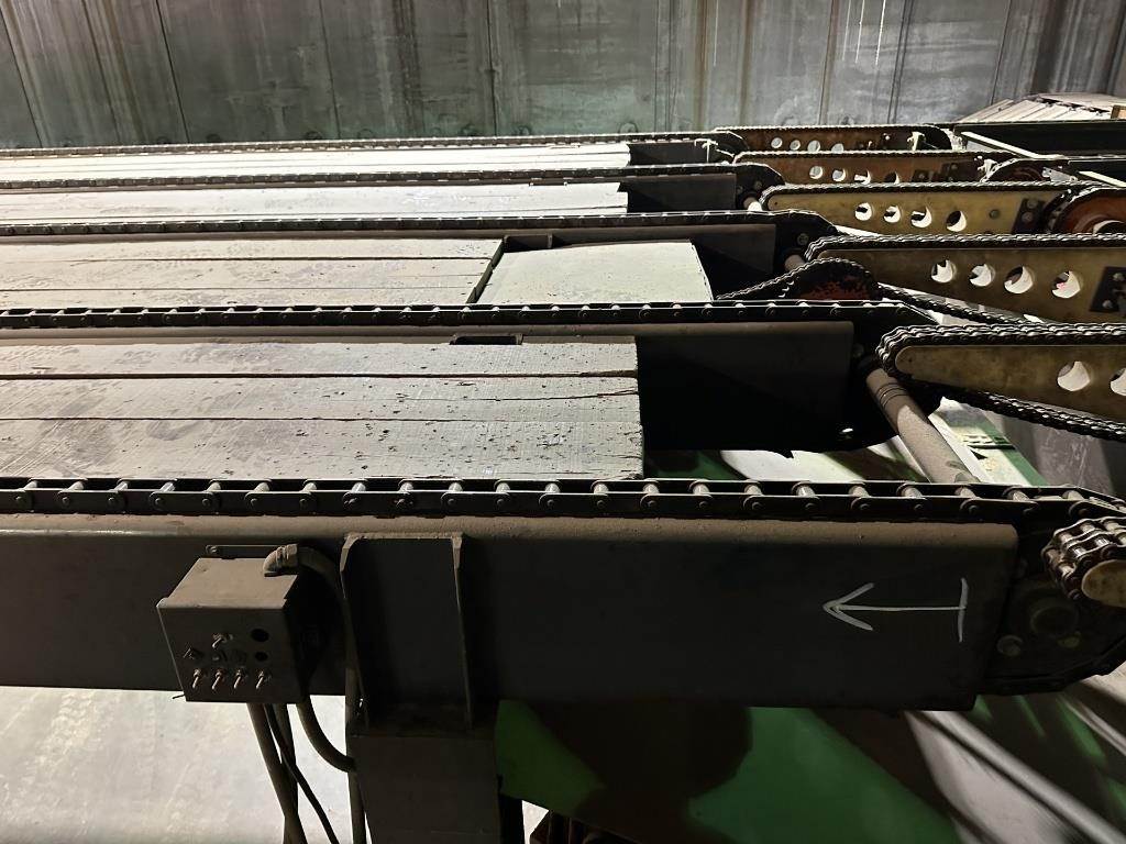 Location: Spencer, WI (5) Chain/Roller Out Feed System Approx 13' Wide 8' Flat, 5'6" Decline, 37' Flat Main Live Deck, READ Disclosure: Electric will be unhooked at machine, hydraulics will be unhooked at machine, Buyer must provided ISA with One Million Dollar liability insurance policy to remove equipment, buyer responsible for removal, equipment to be removed by December 12th 2025