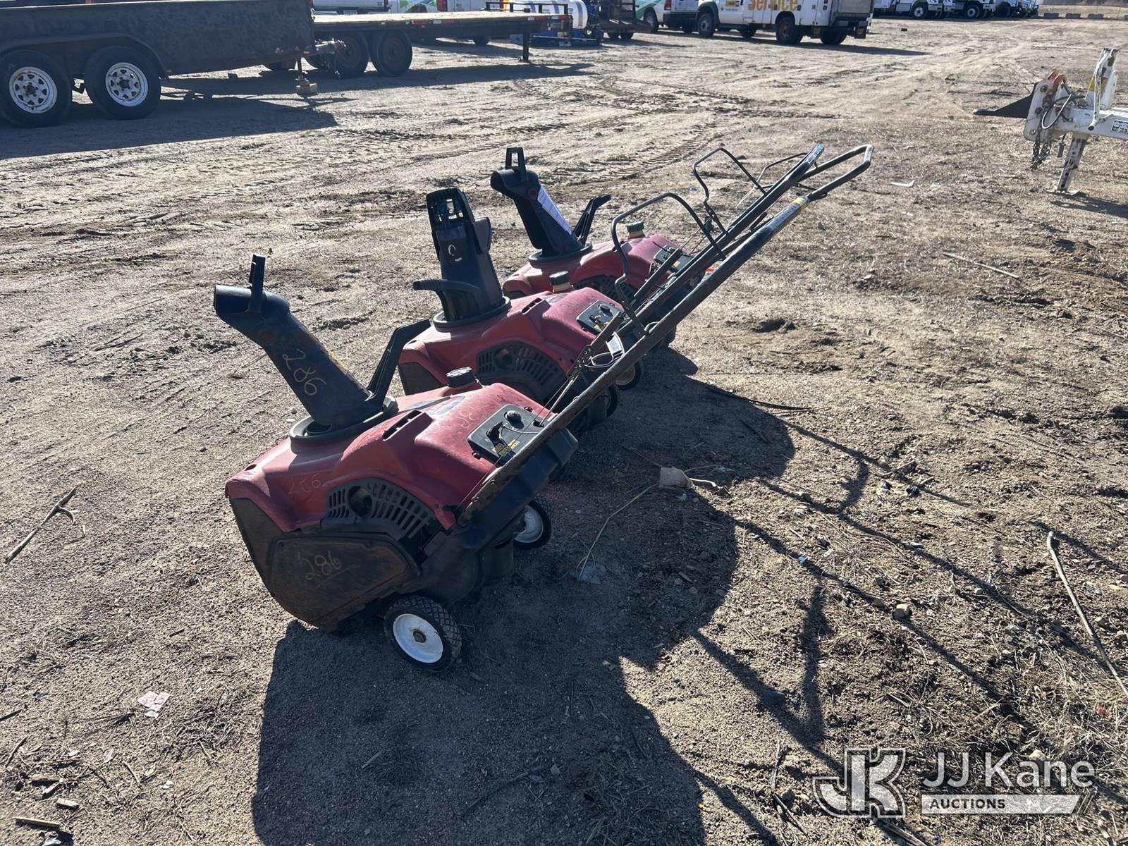 Lot of (3) Toro 721R-C Paddle Snowblower, gas, s/n's 315005291, 315005202, and 315005086 (Condition Unknown) NOTE: This unit is being sold AS IS/WHERE IS via Timed Auction and is located in Shakopee, MN. Inspection & preview days for this unit are the 2 business days prior to the first day of items closing for this auction, item is located at 1109 Stagecoach Rd Shakopee, MN 55379 and hours of operations are 8a-3p. For pre-sale questions, please contact Matt Koopman @ (651) 421-3305. (Buyer is responsible for removal. Assistance by consignor or JJ Kane Auctions is not assured.)