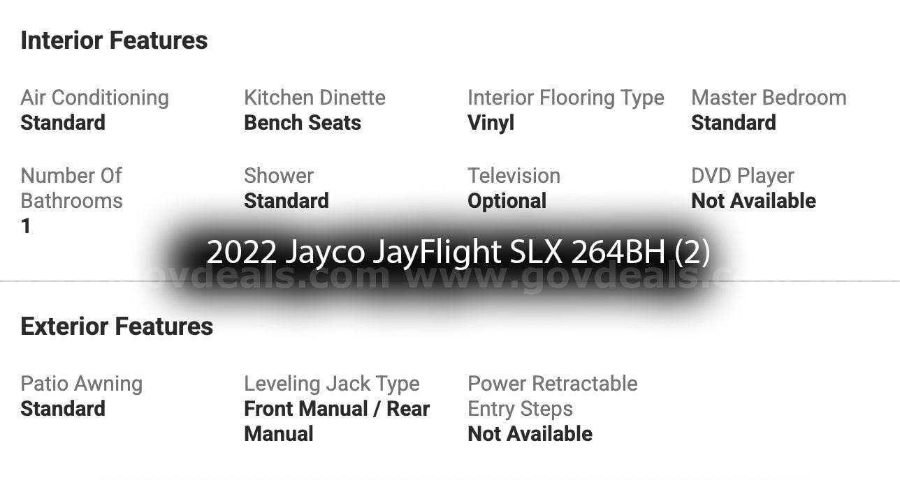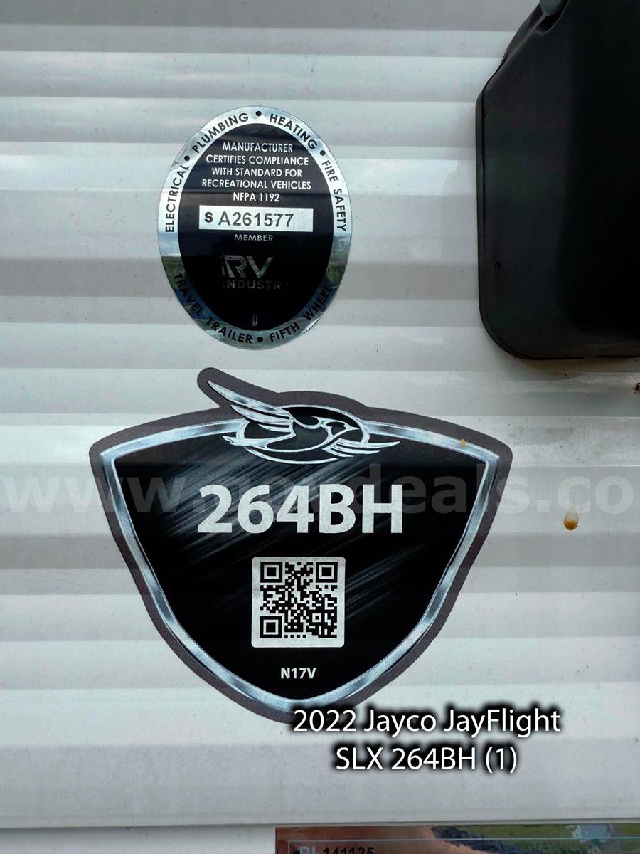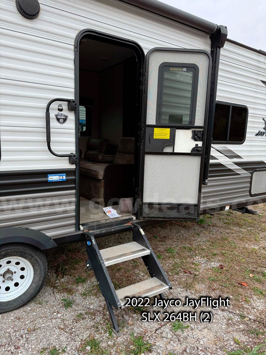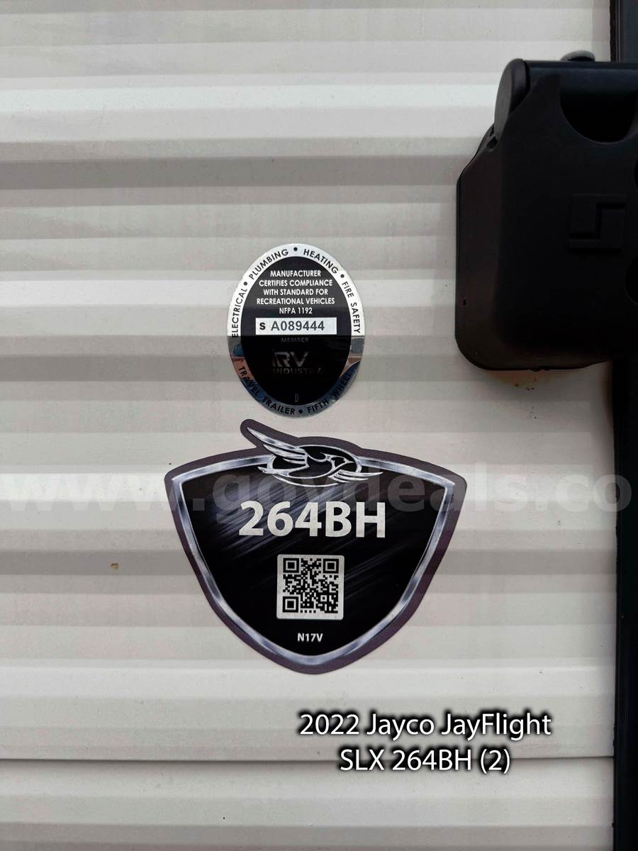 • 2 – 2022 2022 Jayco JayFlight SLX 264BH Travel Trailers – 29’, 5” inches in length.