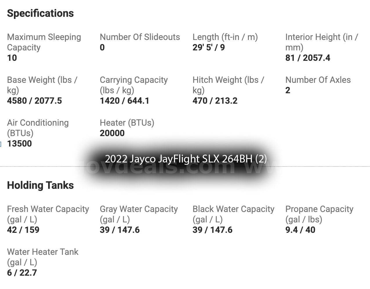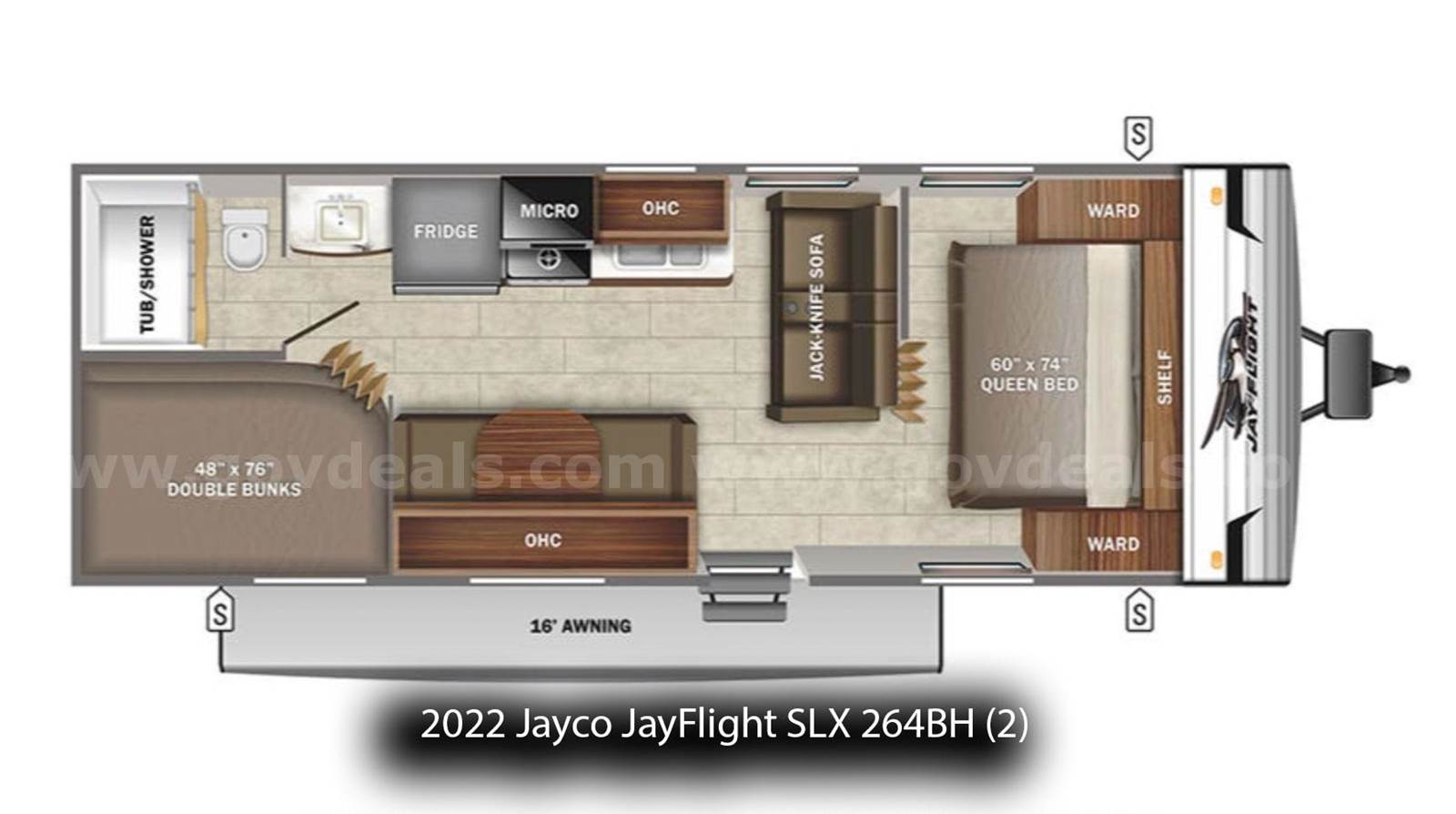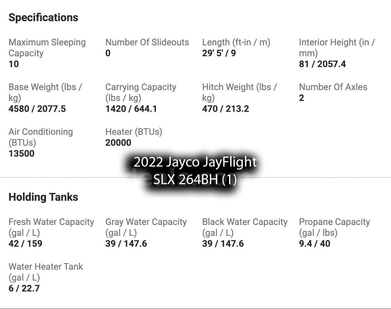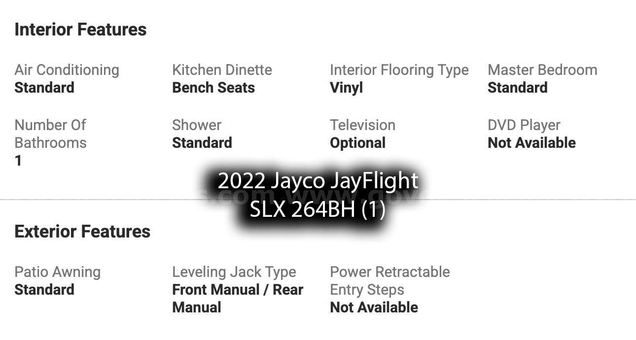 • 2 – 2022 2022 Jayco JayFlight SLX 264BH Travel Trailers – 29’, 5” inches in length.