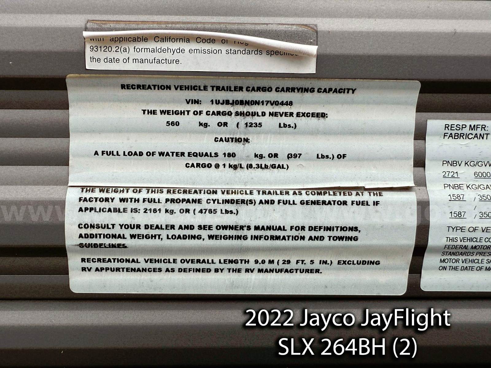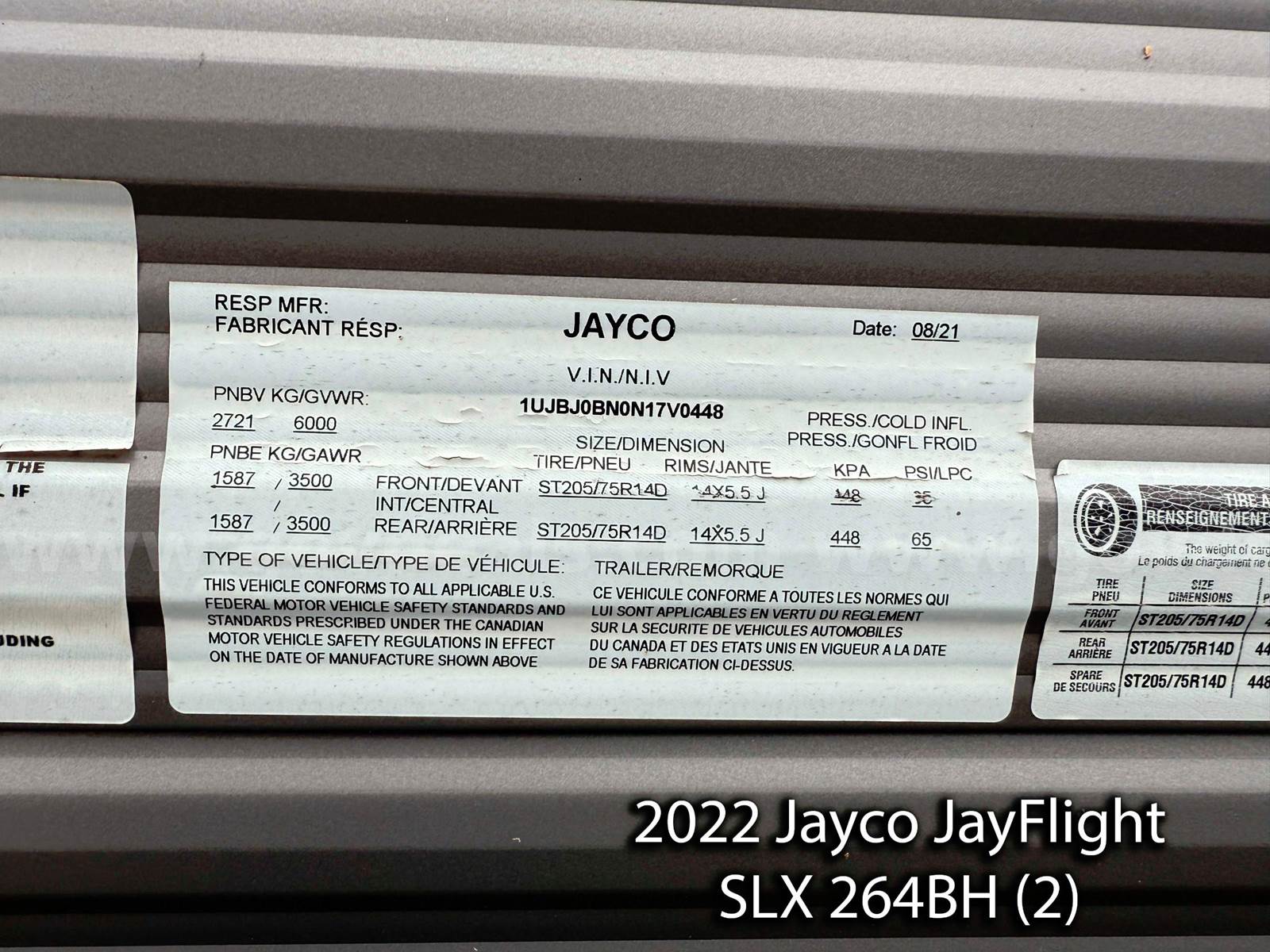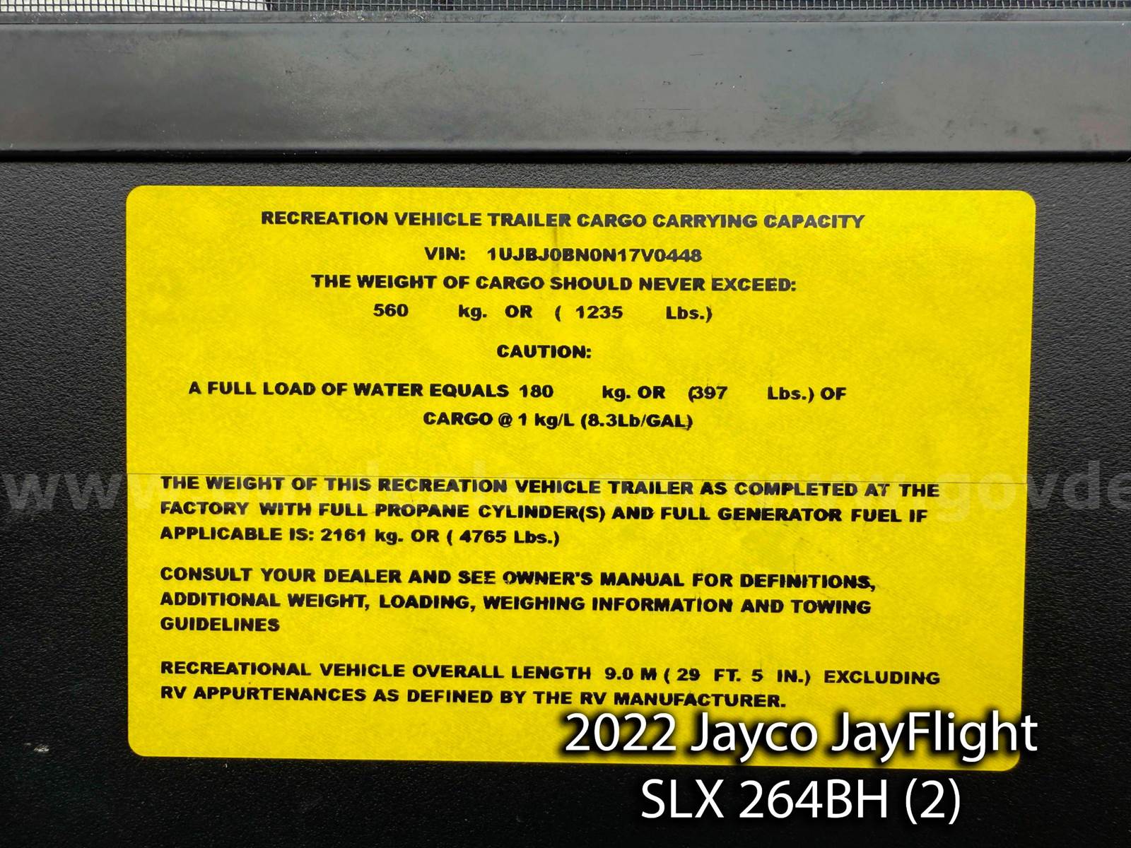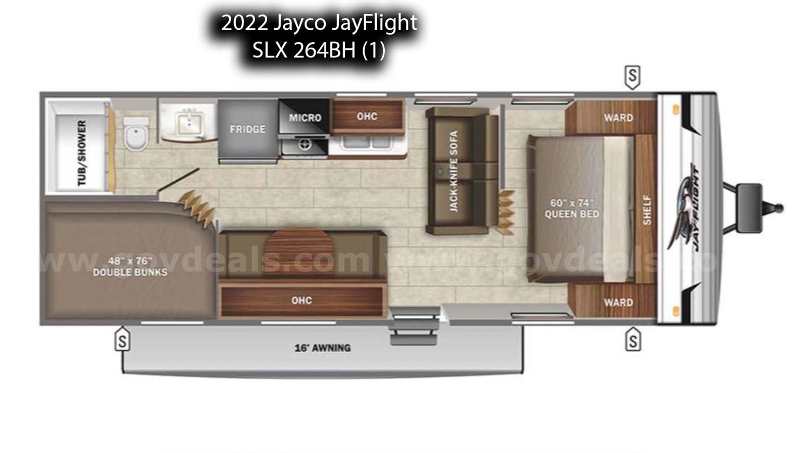 • 2 – 2022 2022 Jayco JayFlight SLX 264BH Travel Trailers – 29’, 5” inches in length.