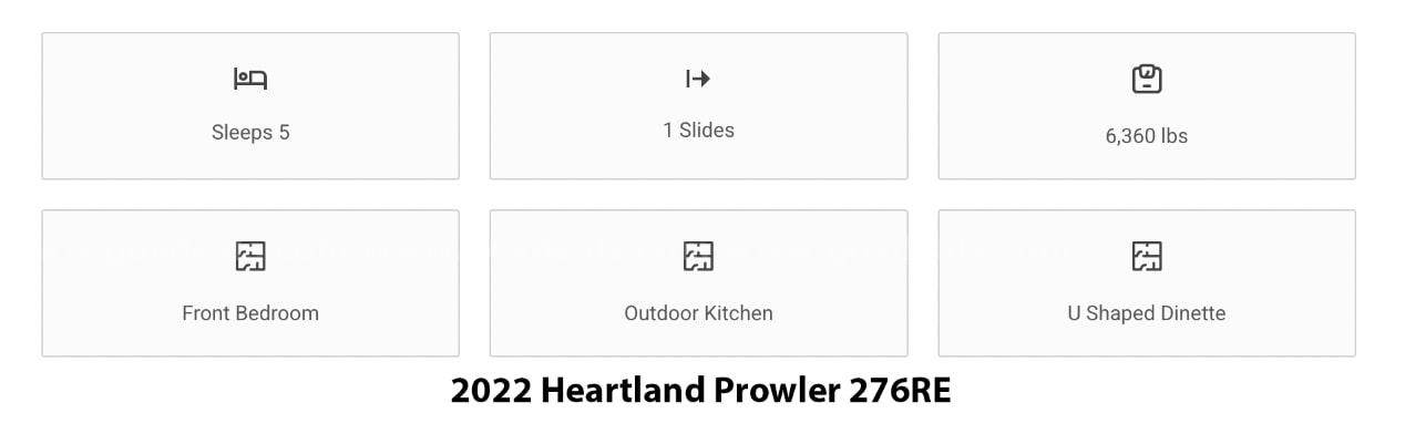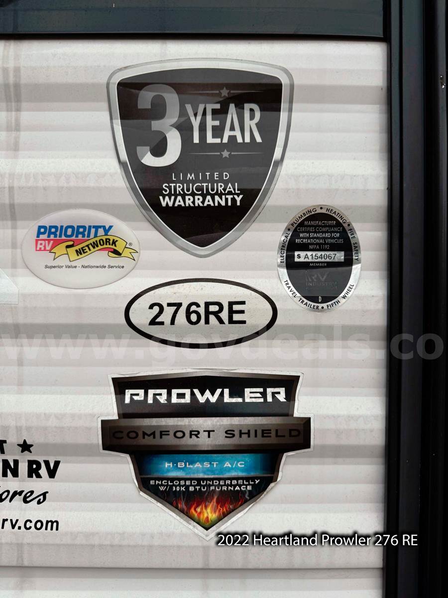 • 2022 Heartland Prowler 276RE Travel Trailer — 32’ in length.