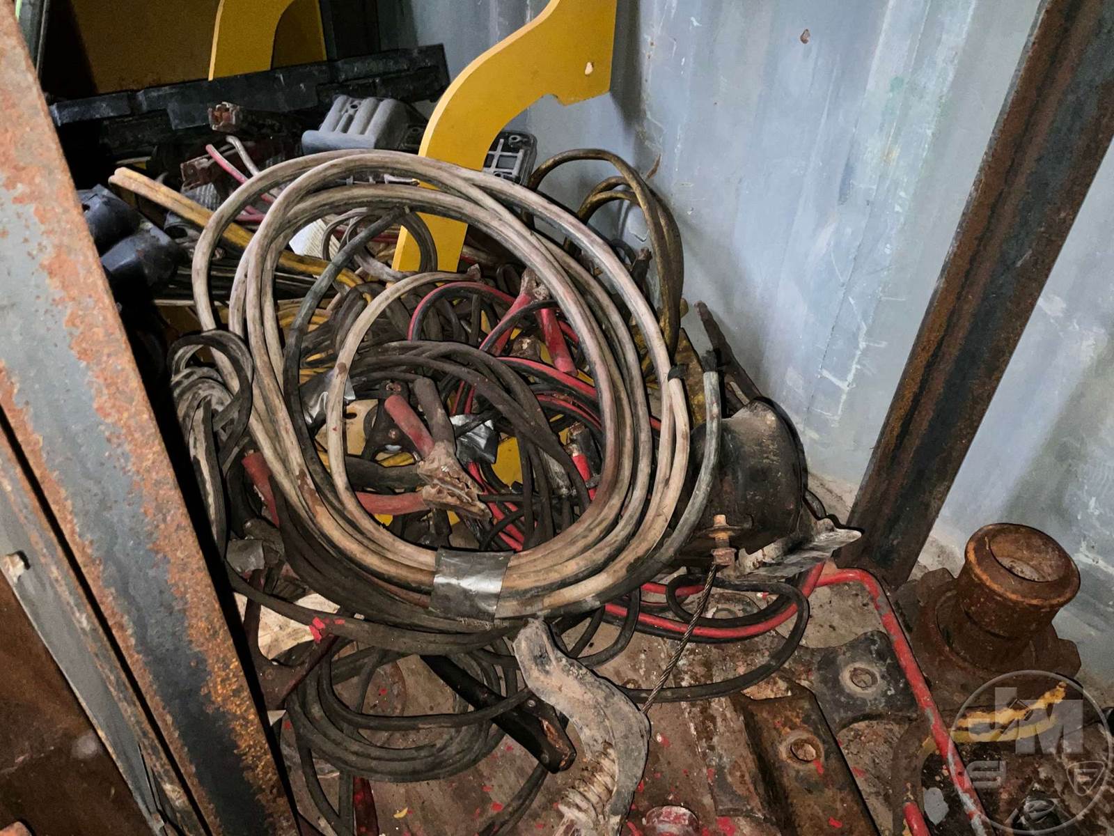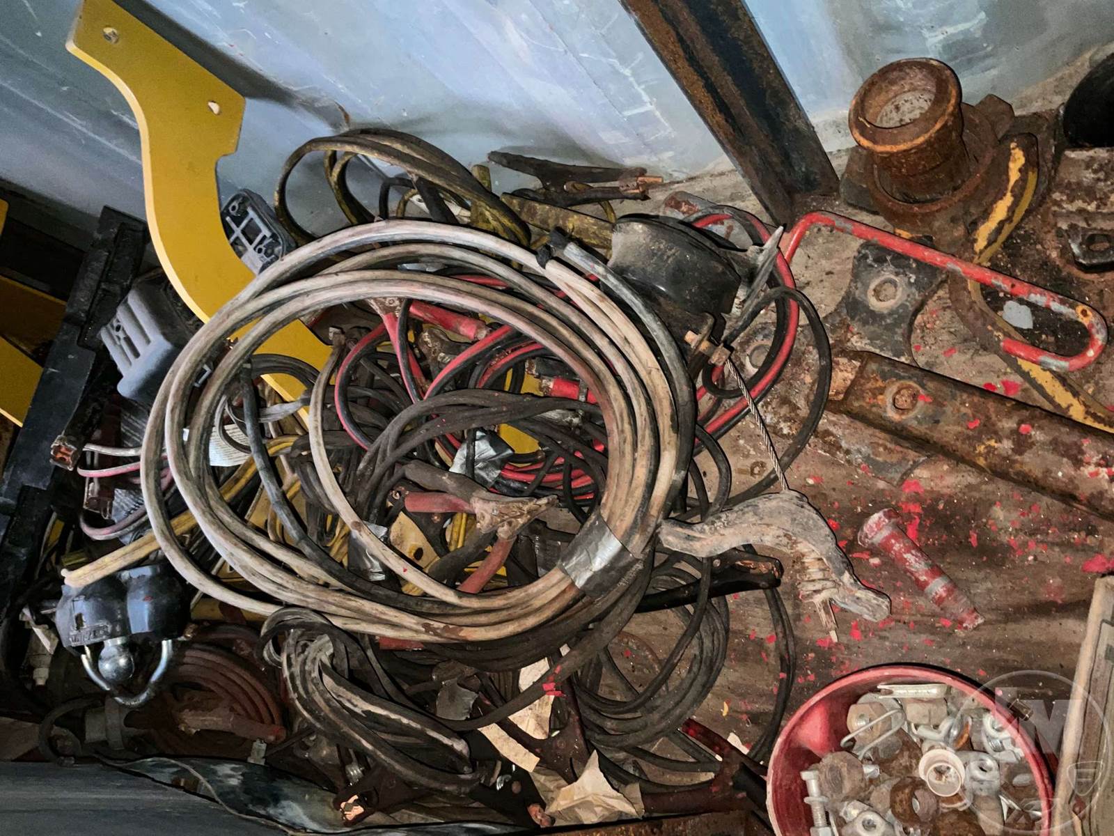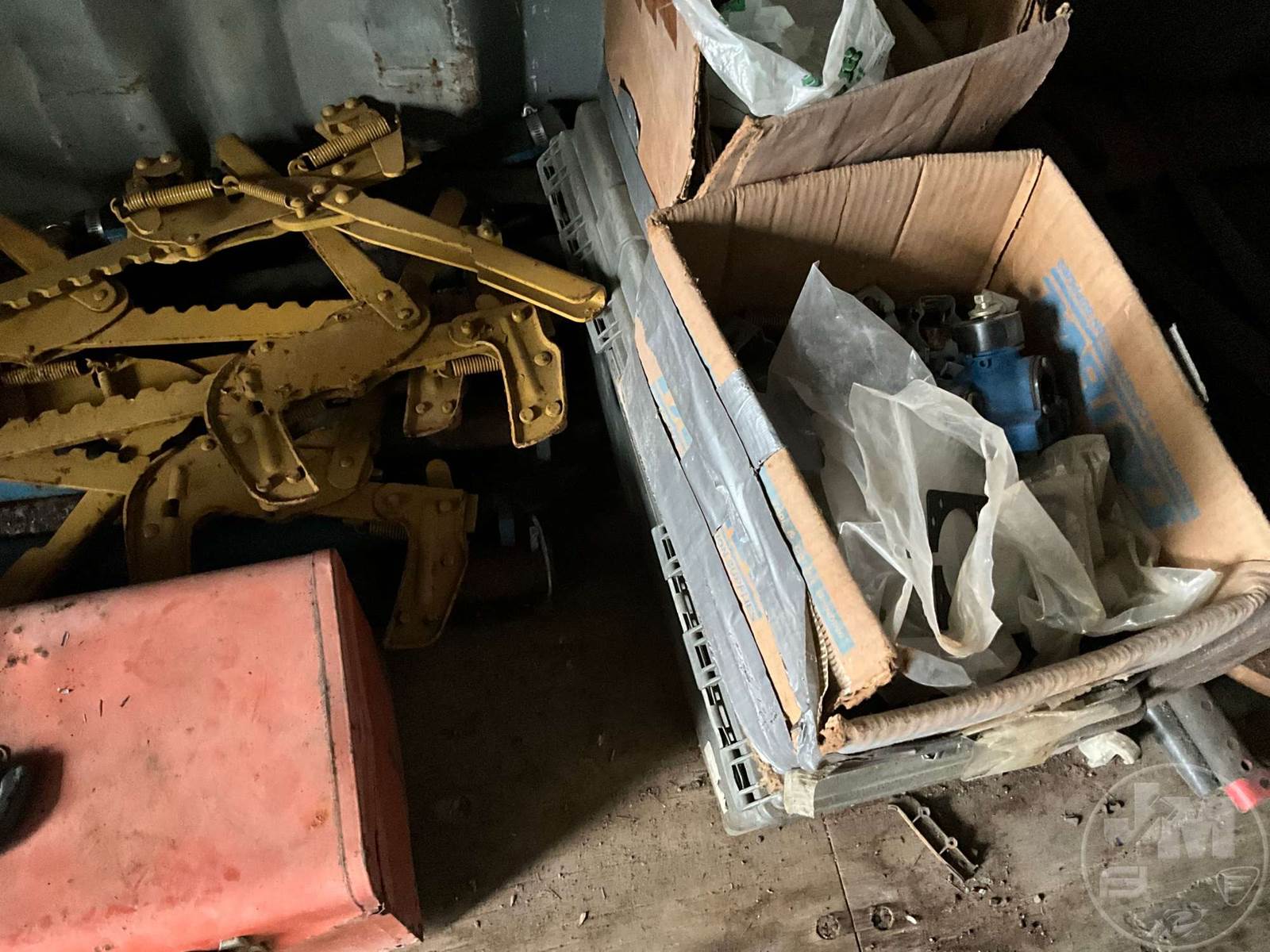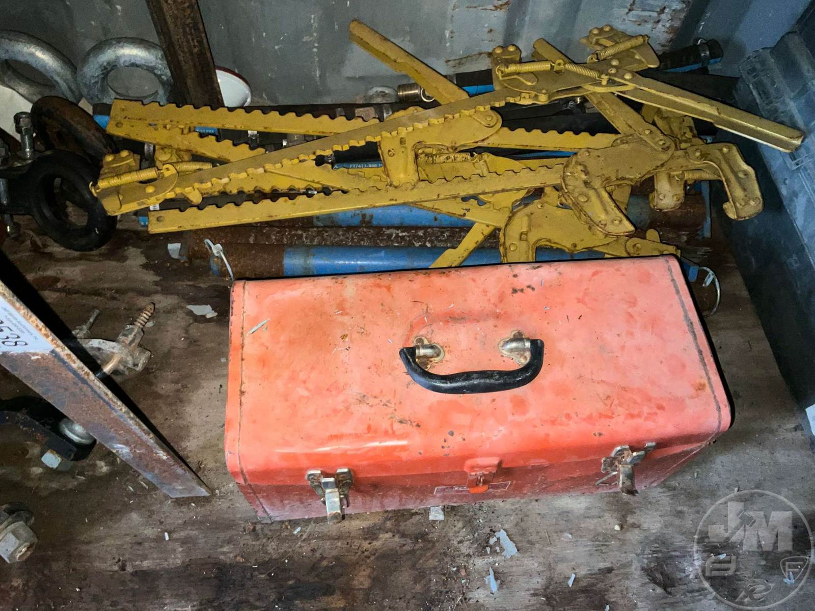 LOT OF BOB-WIRE STRETCHER, RECEIVER HITCHES VARIOUS SIZES, WIRE, TOOL BOX