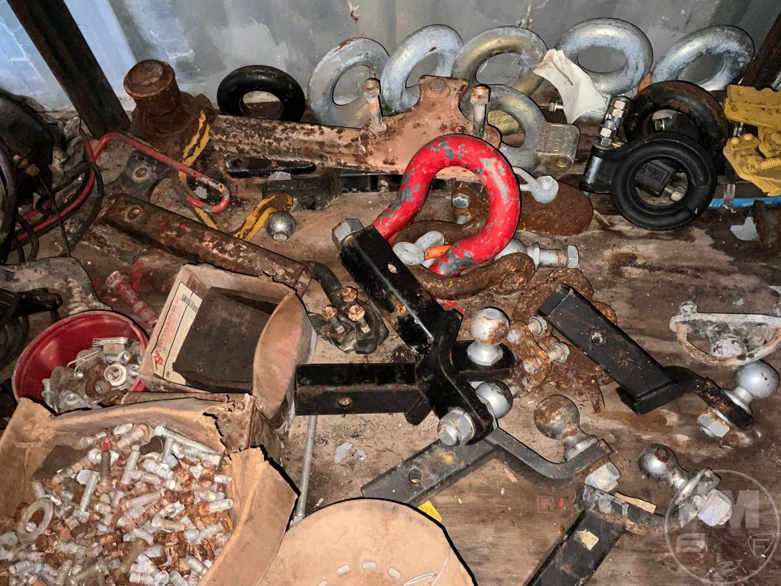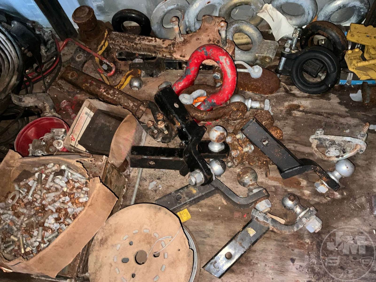 Lot Of Bob-Wire Stretcher, Receiver Hitches Various Sizes, Wire, Tool Box