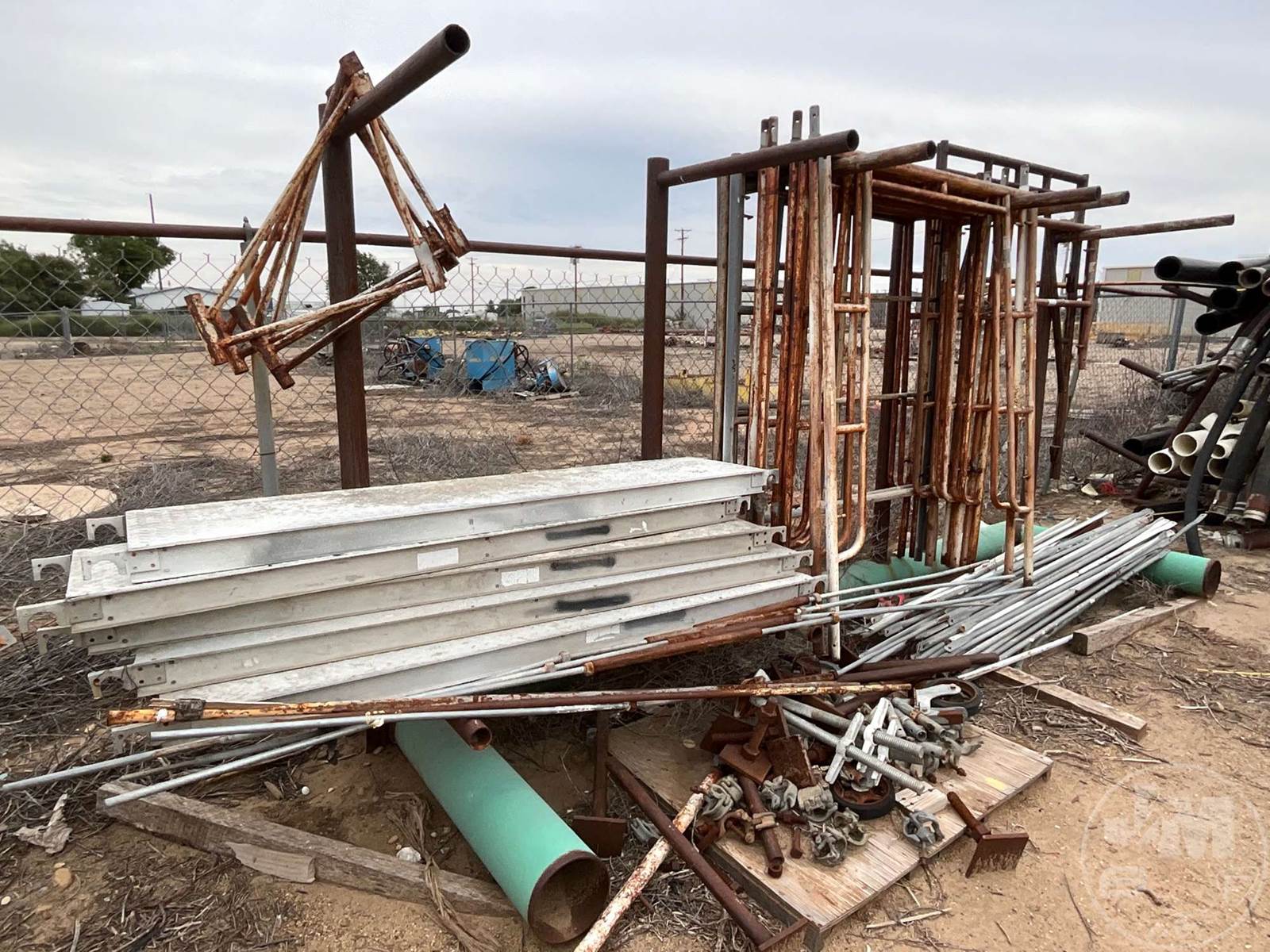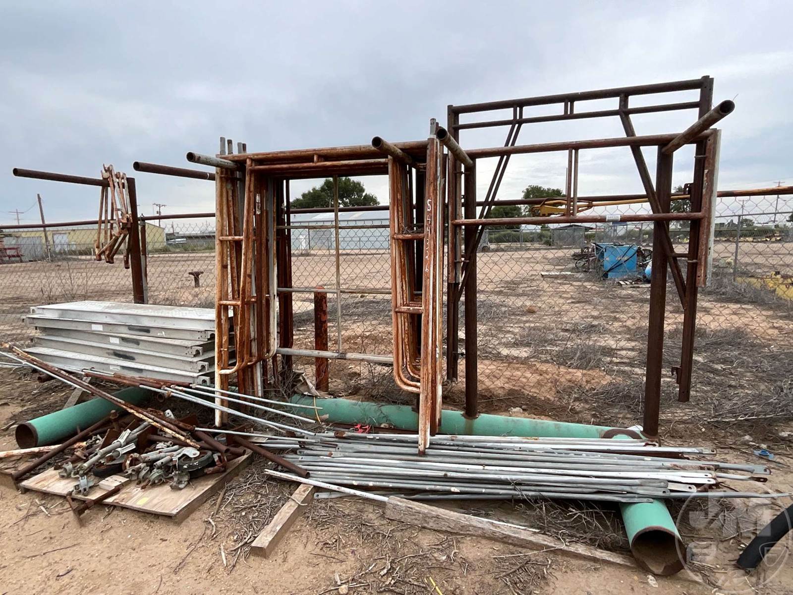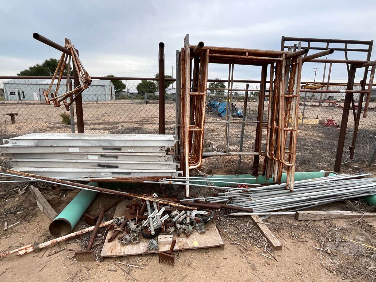 LOT OF SCAFFOLDING FRAMES, BRACES, LEGS, CASTERS & PLANK BOARDS *** STEEL RACK NOT INCLUDED***