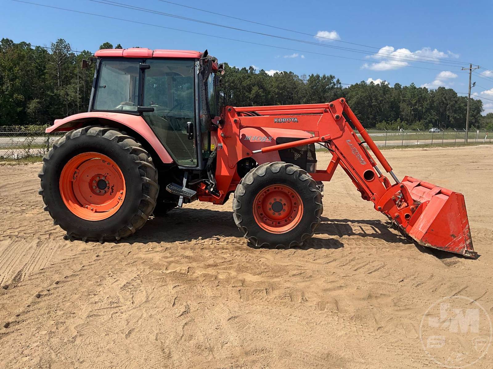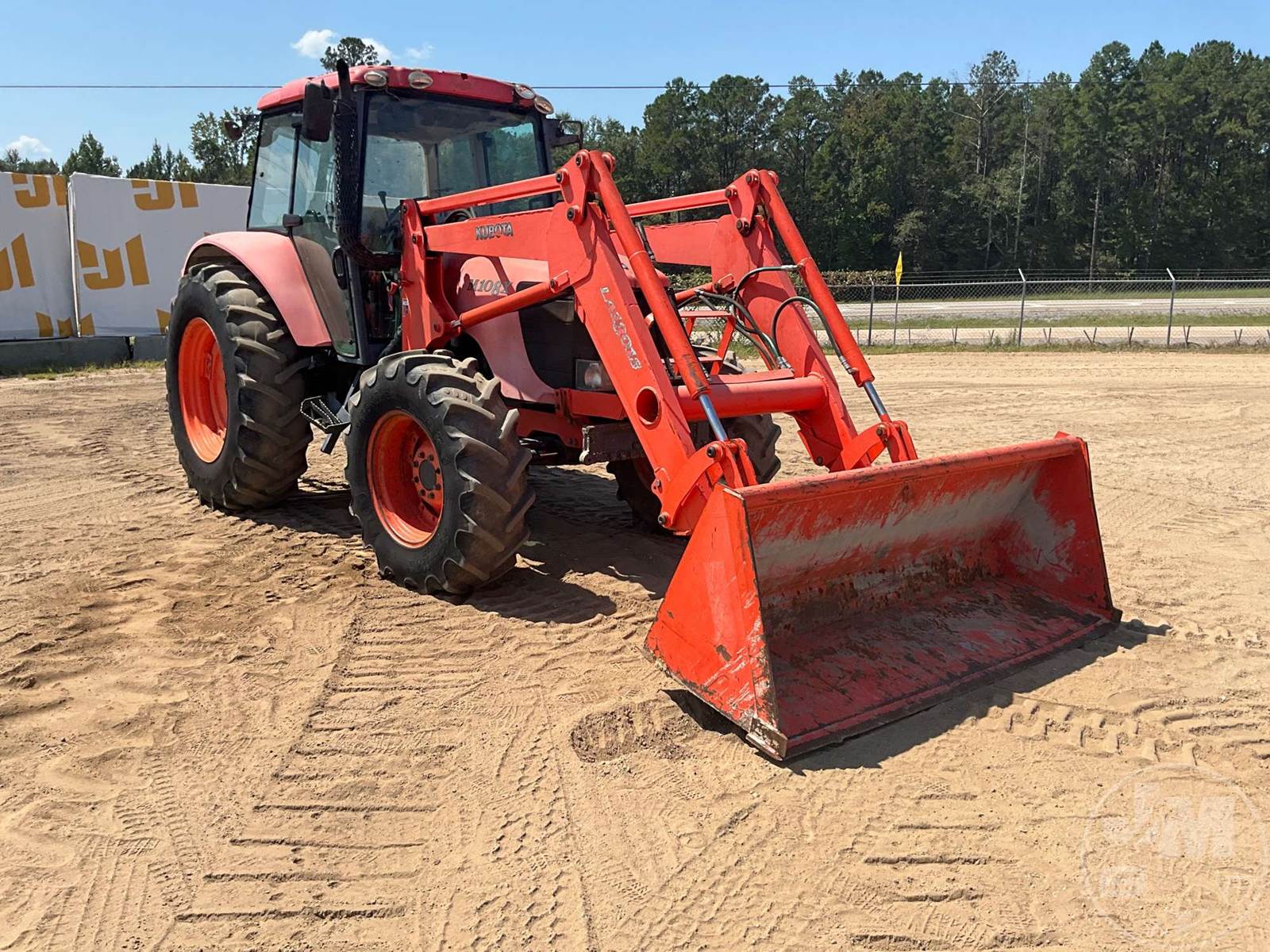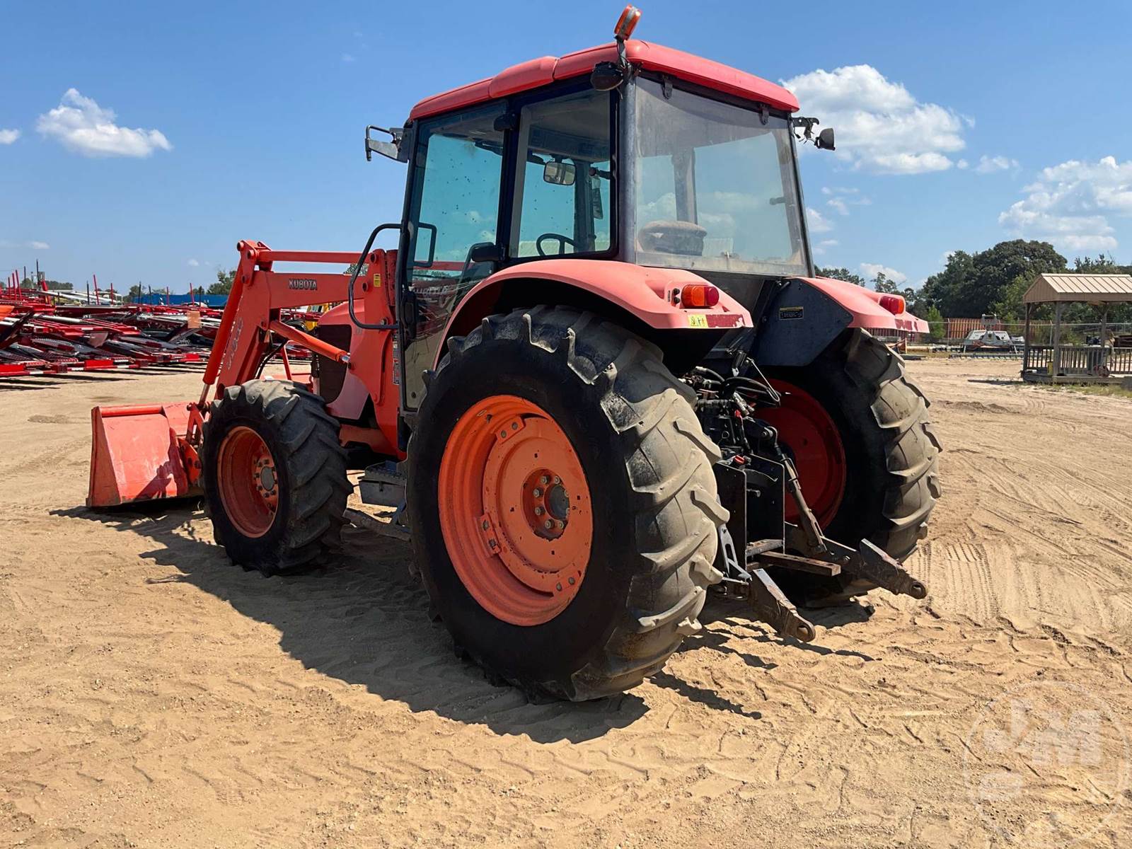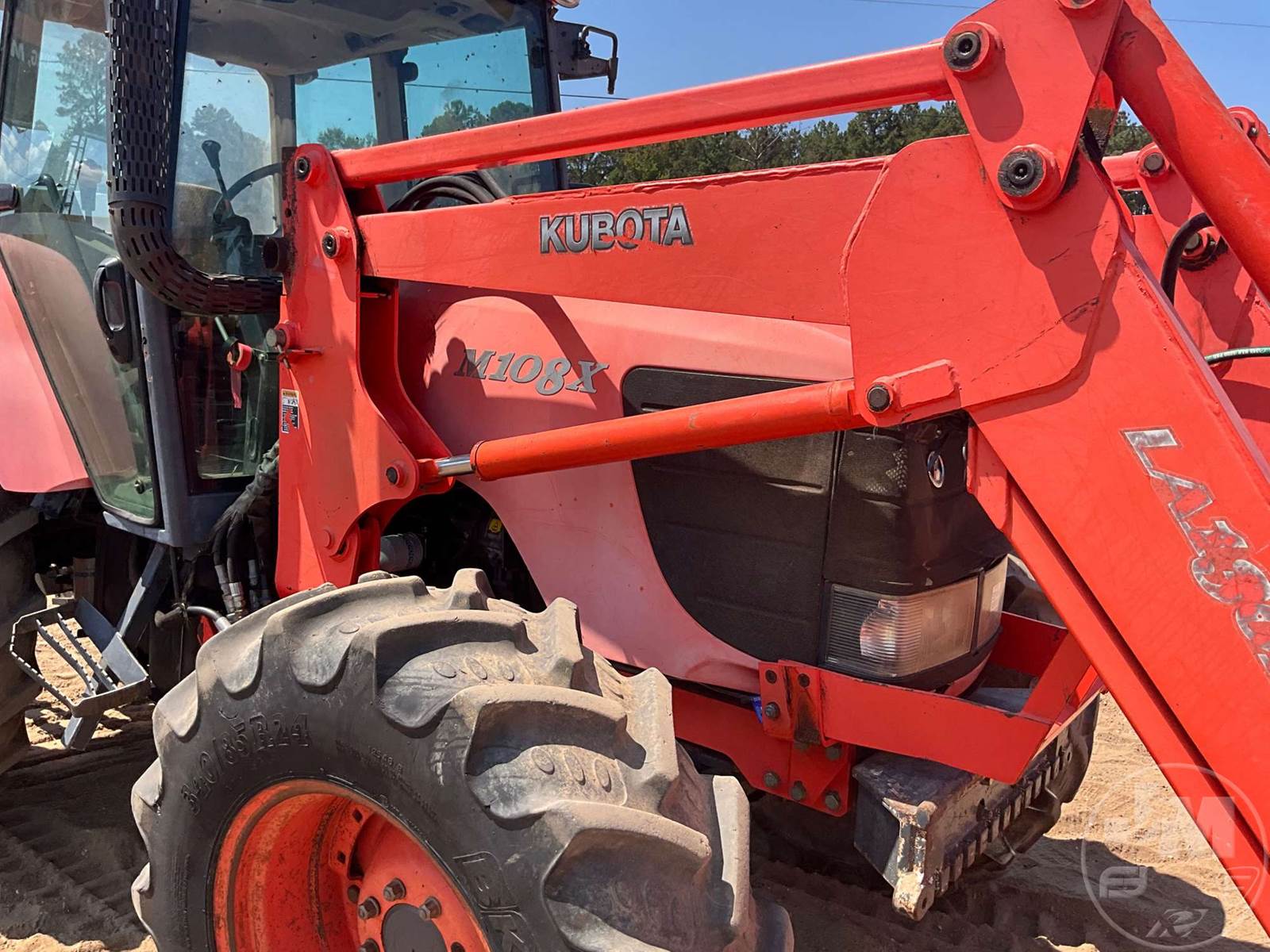 KUBOTA 4X4 TRACTOR W/ LOADER, CAB, A/C, 5 CYL, DIESEL ENGINE, SHUTTLE SHIFT, 3 PT HITCH, DRAWBAR, KUBOTA, LA1301S, LOADER, 84", GP BKT, 540 RPM PTO, 3 REMOTES, DUAL MID MOUNT REMOTE, JUMP SEAT, 18.4-34 REAR TIRES, 340/85R24 FRONT TIRES, HOUR METER READS: 5310, ***NO CENTER LINK***