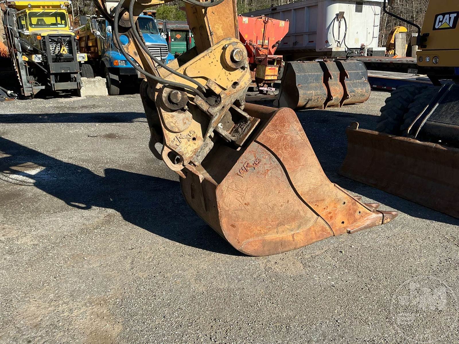 CATERPILLAR MOBILE EXCAVATOR, CAB, AC, RADIO, 30" BUCKET, AUX HYDRAULICS, HYDRAULIC COUPLER, HYD STABLILIZER, WAIN ROY TILT BUCKET