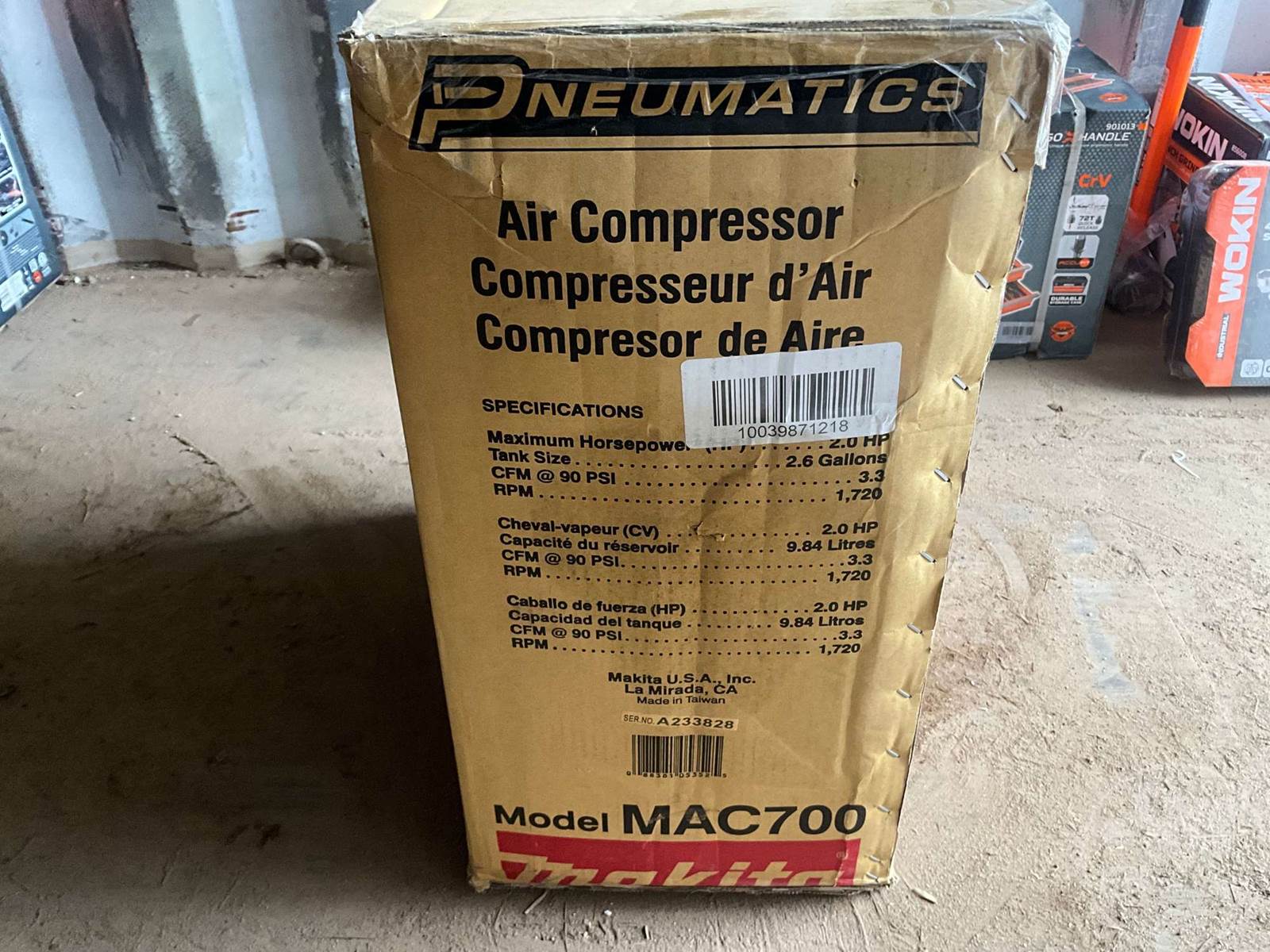 UNUSED MAKITA PORTABLE AIR COMPRESSOR, Â ELECTRIC, 2 HP, 2.6 GAL