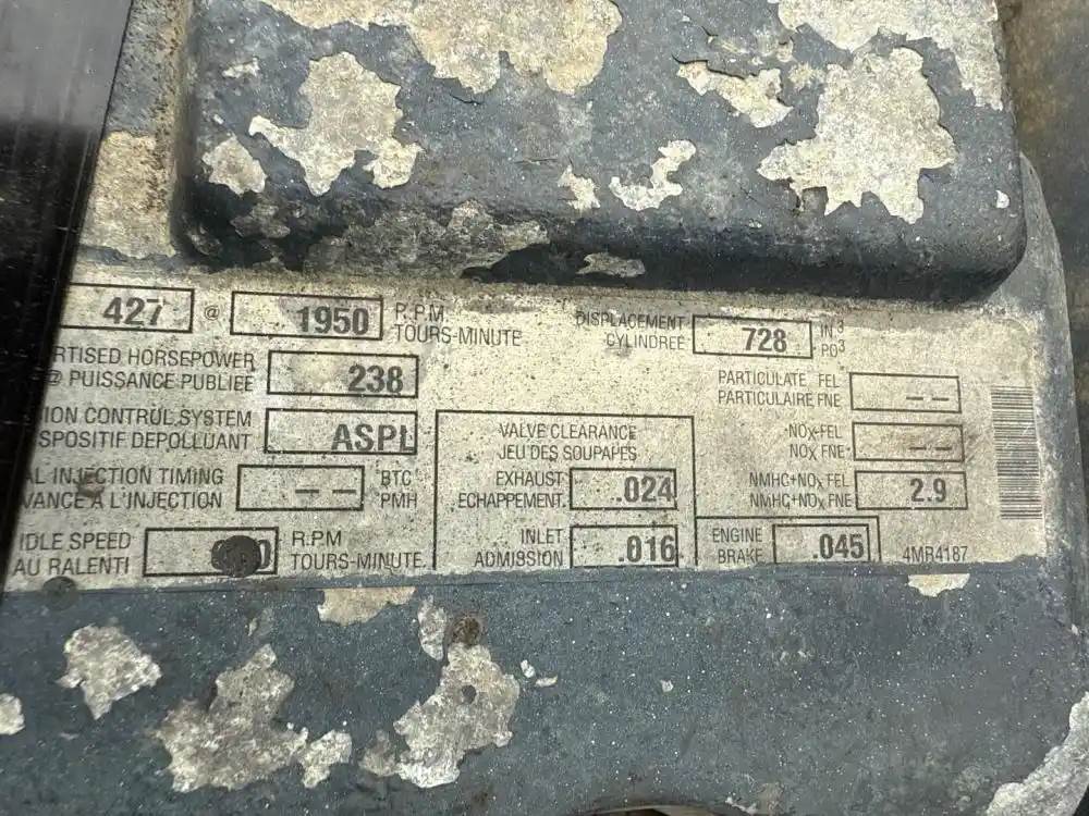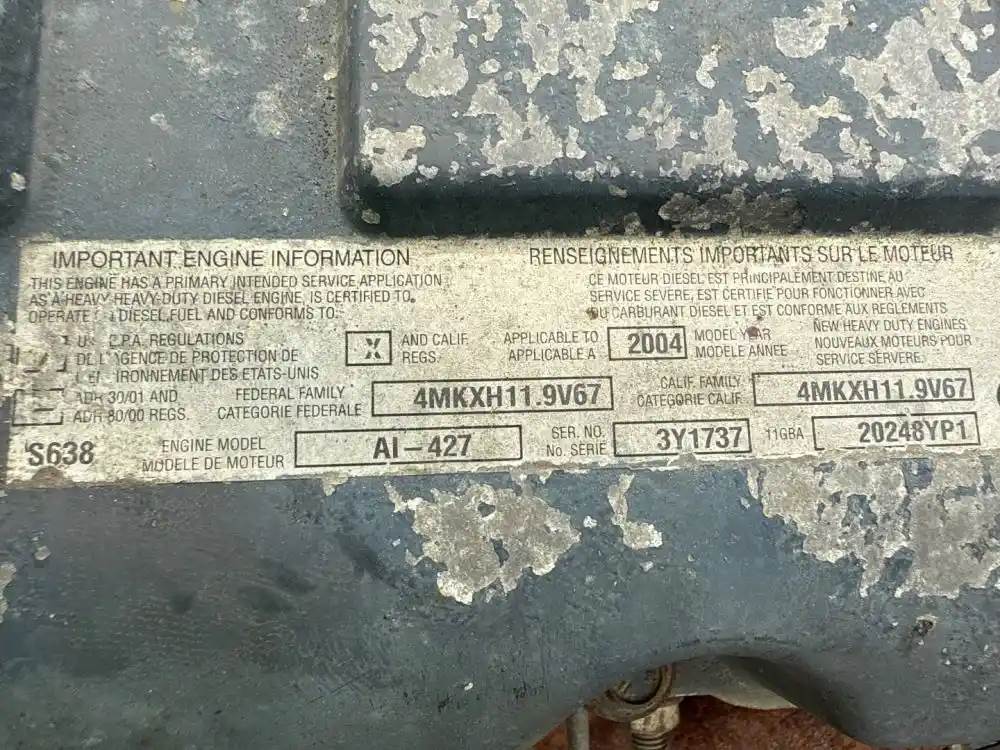 (Used) 2004 Mack AI-427, ENGINE ASSEMBLY- Family Number: 4MKXH11.9V67, Displacement: 11.9L, Horsepower: 427, Serial Number: 3Y1737, ECS: ASPL, Reference images for condition For more information about this item, give us a call. We ship Worldwide! (CRG HEAVY TRUCK PARTS) 929 W PULASKI HWY ELKTON, MD 21921, Serial#: 3Y1737, Horse Power: 427, Casting#: 3Y1737