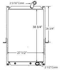 CORE HEIGHT: 38 7/8" , CORE WIDTH: 27 1/2" , DEPTH: 2 1/16" , INLET: 2 5/16" – Upper Right , OUTLET: 2 1/2" – Lower Right , OIL COOLER: 11 1/2" Centers