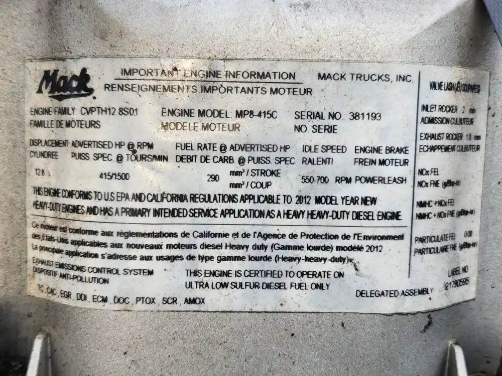 (Core) Engine does not Turn 360 Degrees Complete, 2012 Mack MP8, ENGINE ASSEMBLY- Family Number: CVPTH12.8S01, Displacement: 12.8L, Horsepower: 415, Serial Number: 391193, Part Number: 21790595 ECS: TC, CAC, EGR, DDI, ECM, DOC, PTOX, SCR, AMOX, Reference images for condition, For more information about this item, give us a call. We ship Worldwide! (CRG HEAVY TRUCK PARTS) 929 W PULASKI HWY ELKTON, MD 21921, Serial#: 391193, Horse Power: 415, Casting#: 391193
