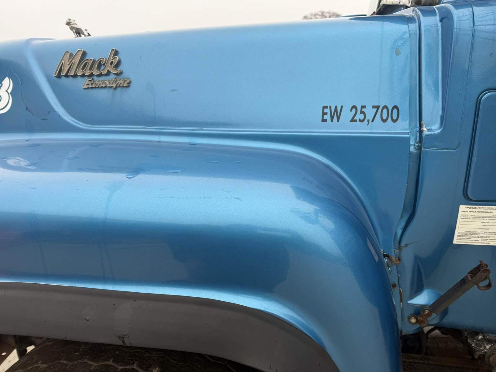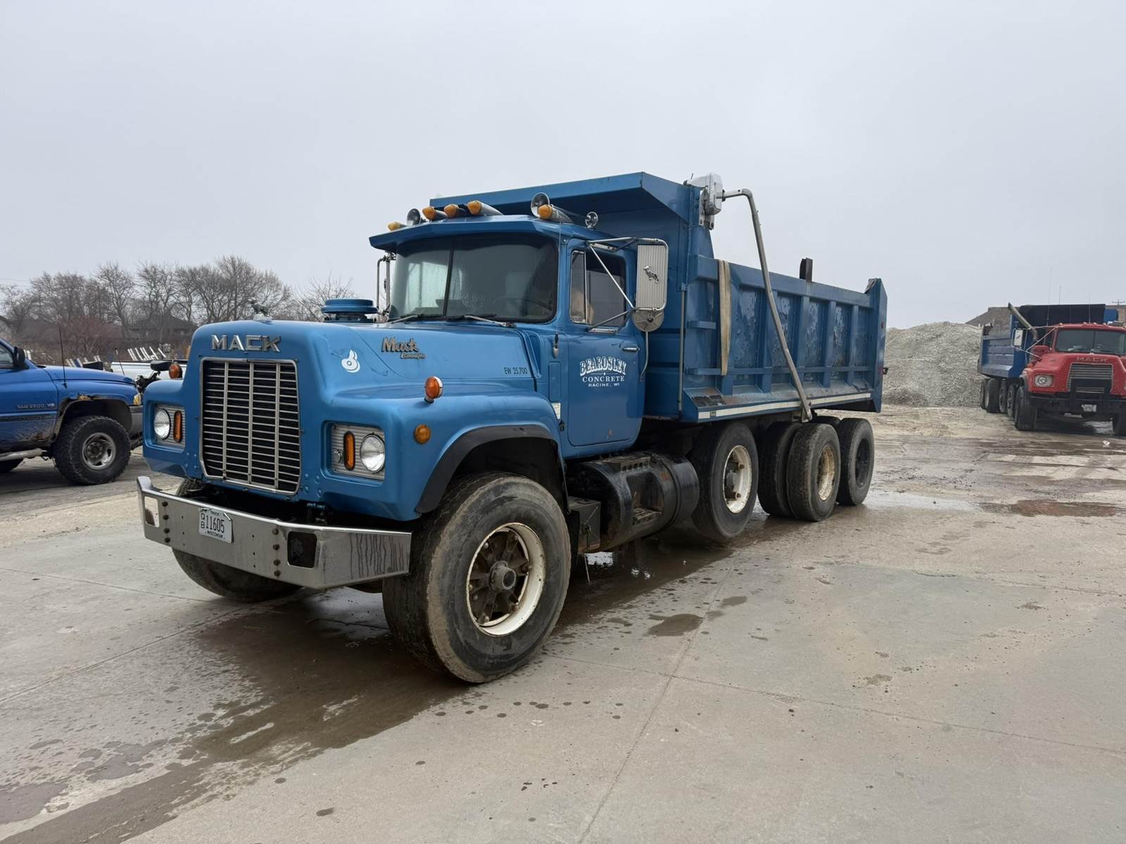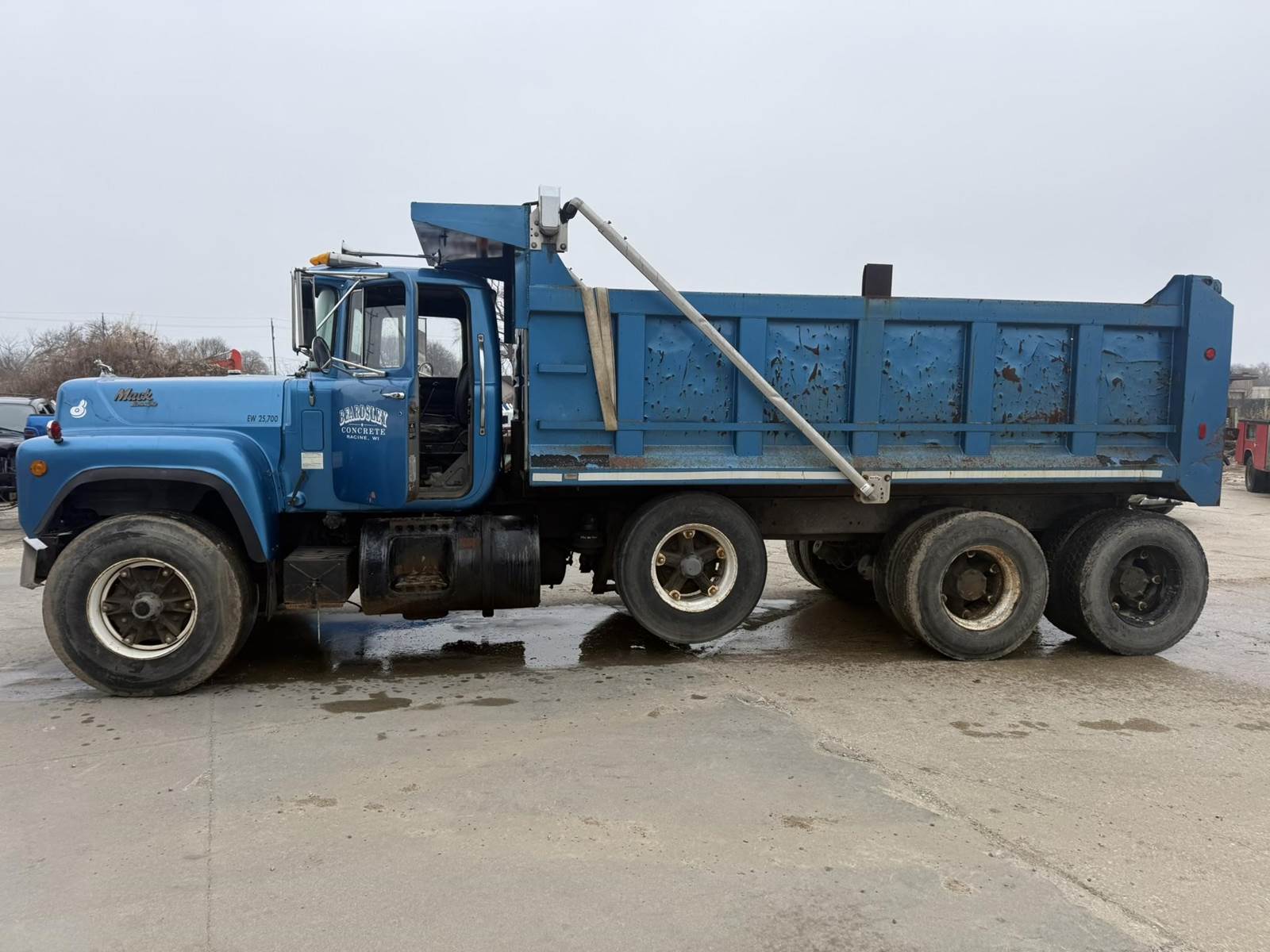 Mack EM6-300 Turbo Diesel Engine, Eaton Fuller Roadranger Manual Transmission, Air Ride, 35000LB GVWR, 12000LB Front Axle, 23000LB Rear, Air Brakes, PTO, Approx 15' Dump Box, Heat, Radio, Aluminum Outers, 70R16.5 Tires