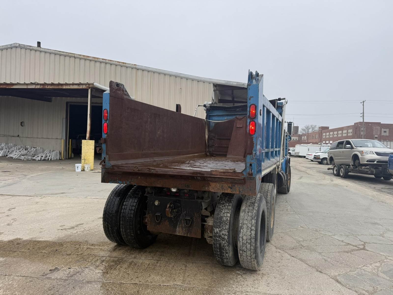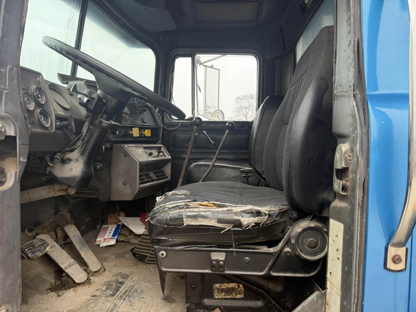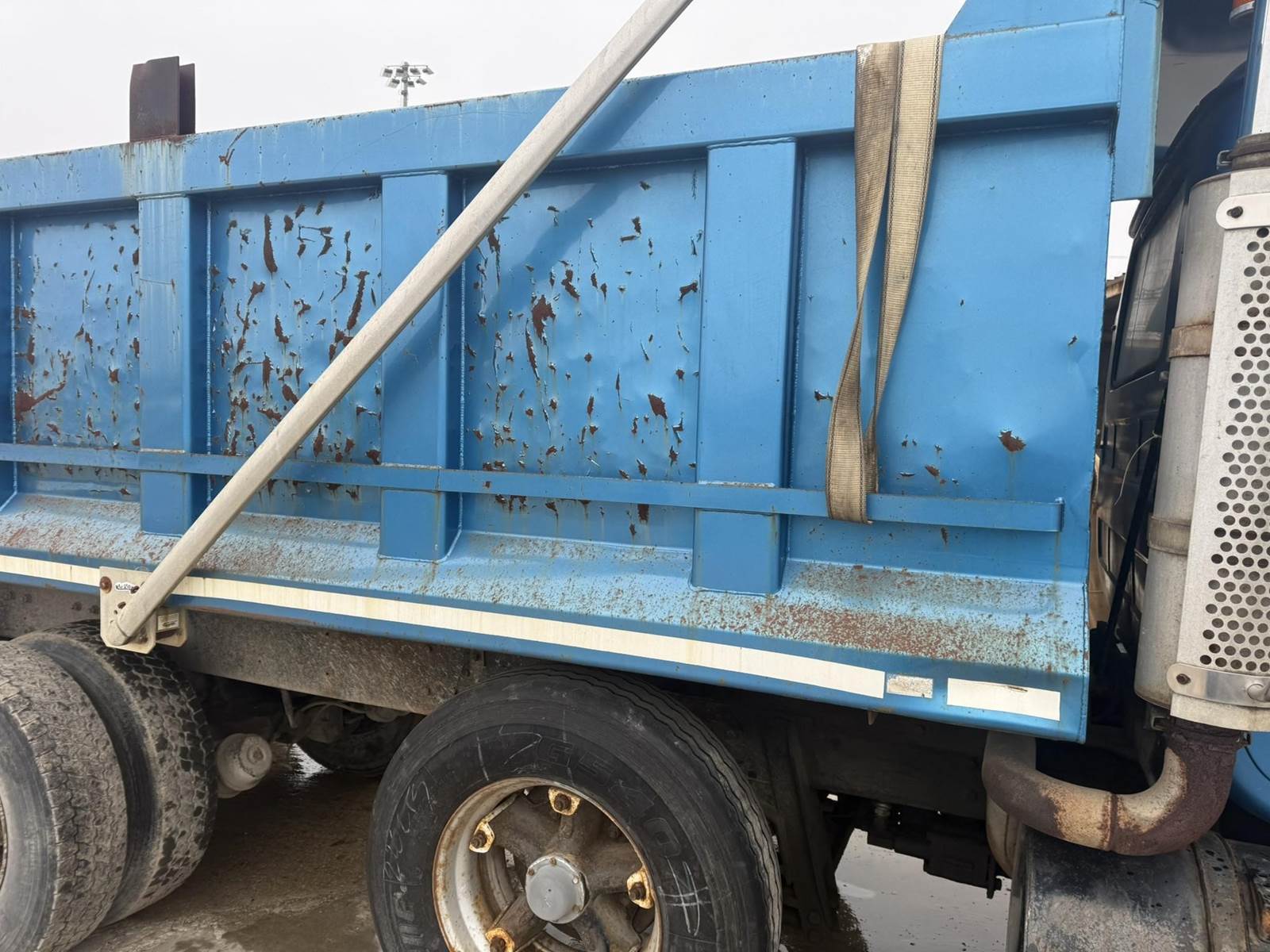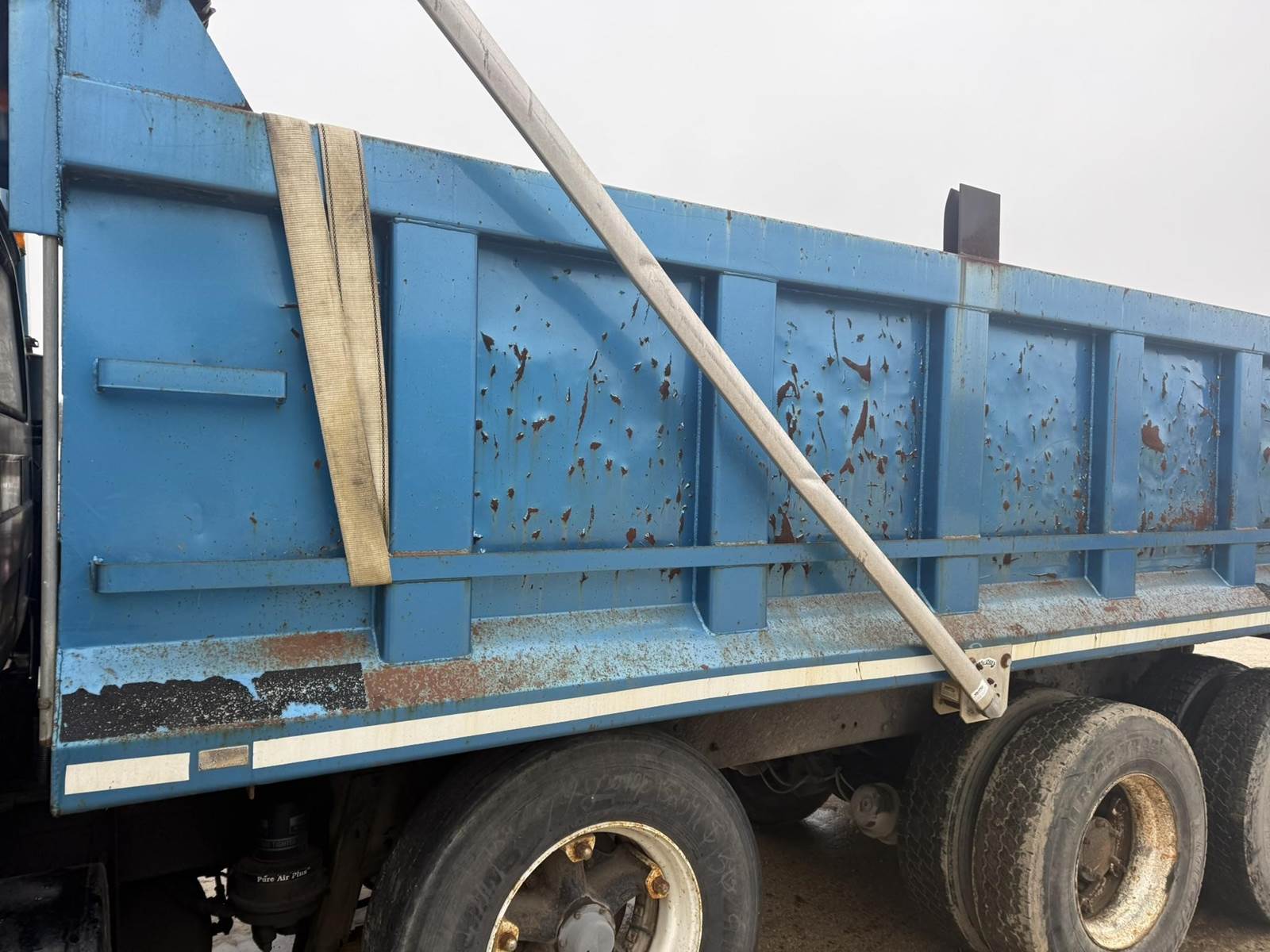 Mack EM6-300 Turbo Diesel Engine, Eaton Fuller Roadranger Manual Transmission, Air Ride, 35000LB GVWR, 12000LB Front Axle, 23000LB Rear, Air Brakes, PTO, Approx 15' Dump Box, Heat, Radio, Aluminum Outers, 70R16.5 Tires