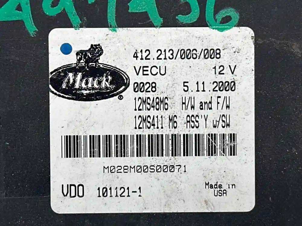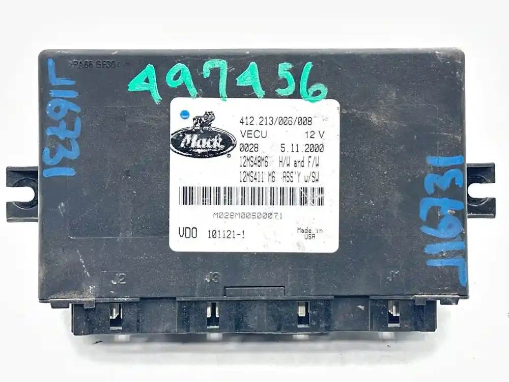 (Used) 2001 Mack CCX613 VISION, CAB CONTROL MODULE VEHICLE ECM- Part Number: 12MS48M6, Serial Number: M028M00S00071, 412.213/006/008, 12V , 12MS411 M6, 101121-1, 412.213/006/019, 3 Rectangular Plug with 18 Pins each, 1 Rectangular Plug with 15 Pins, Reference images for condition. For more information about this item, give us a call. We ship Worldwide! (CRG HEAVY TRUCK PARTS) 929 W PULASKI HWY, ELKTON, MD 21921