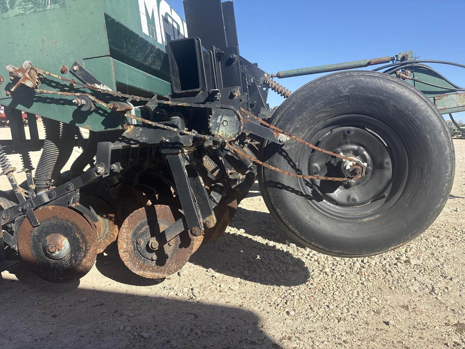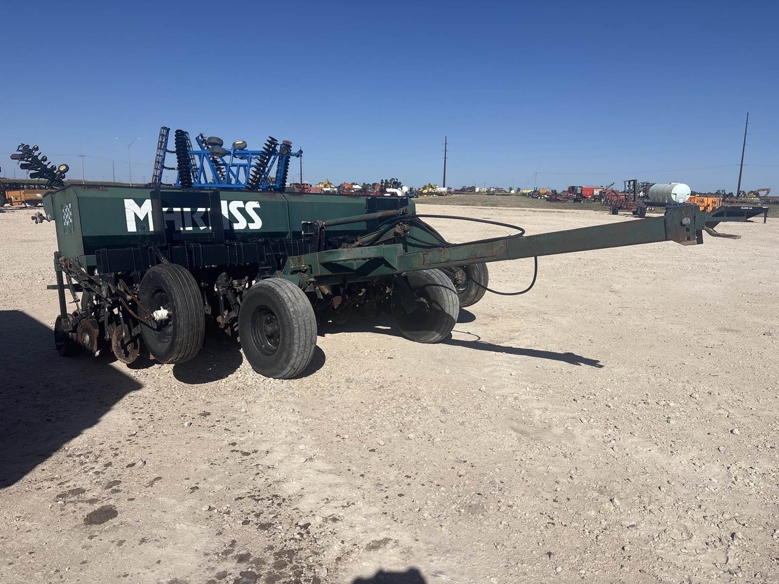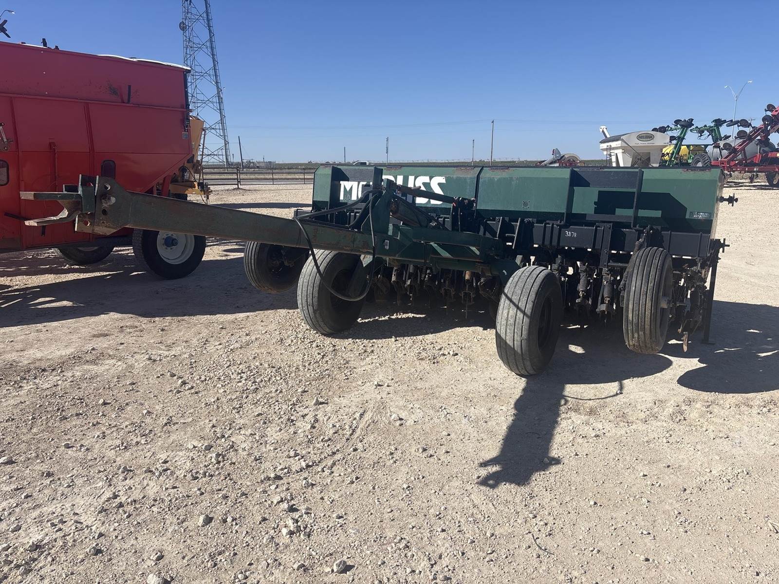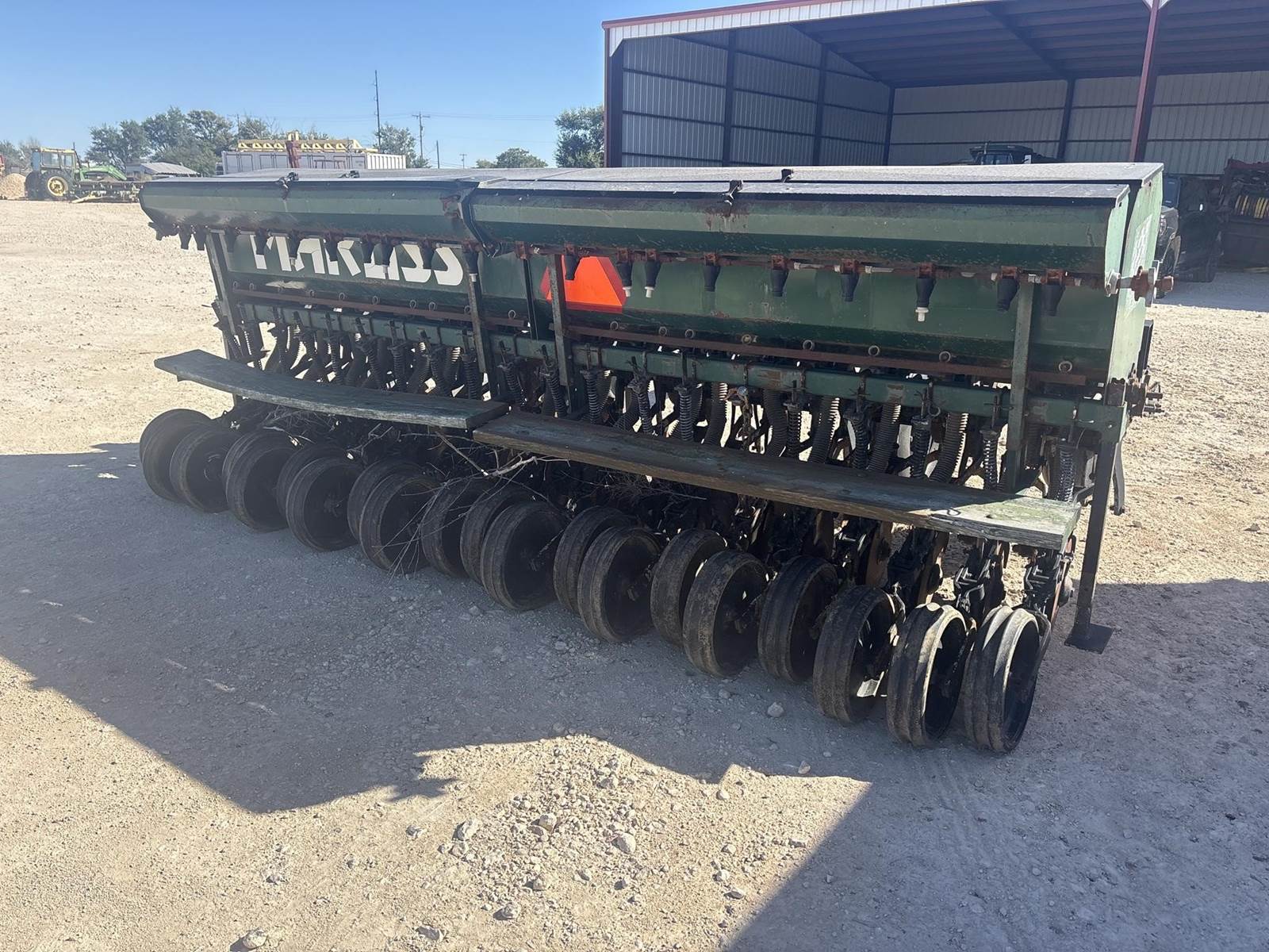 Marliss 12’ pull type no till wheat drill. On 7.5” spacing. Has the small grass box on the back. It is missing one of the no till coulters up front.