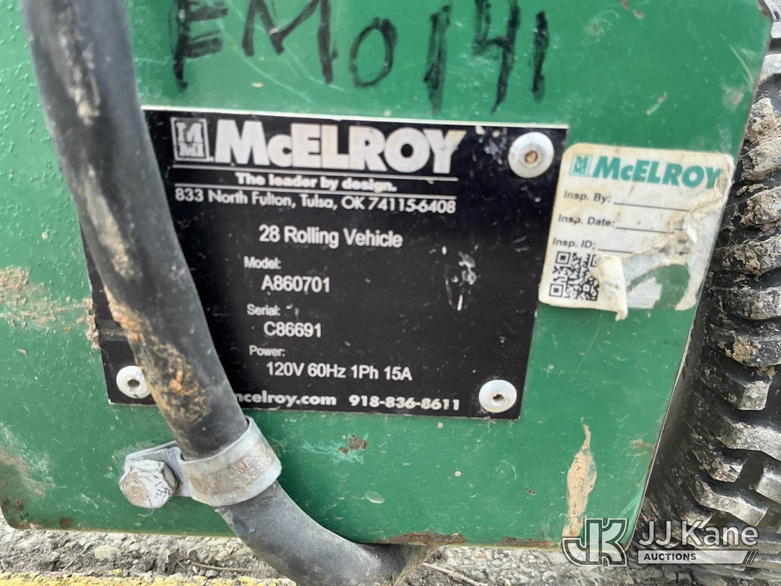 McELROY Pitbull 28/Model AT805505 Fusion, Serial C86345 W/ Rolling Cart Model A860701 Serial C86691 (Conditions Unknown ) NOTE: This unit is being sold AS IS/WHERE IS via Timed Auction and is located in Kansas City, MO. Inspection & preview days for this unit are the 2 business days prior to the first day of items closing for this auction, item is located at 962 Tel Aviv Ave Kansas City, MO 64153 and hours of operations are 8a-4p. For pre-sale questions, please contact Ricky McPherson @ (816) 610-2250. (Buyer is responsible for removal. Assistance by consignor or JJ Kane Auctions is not assured.)