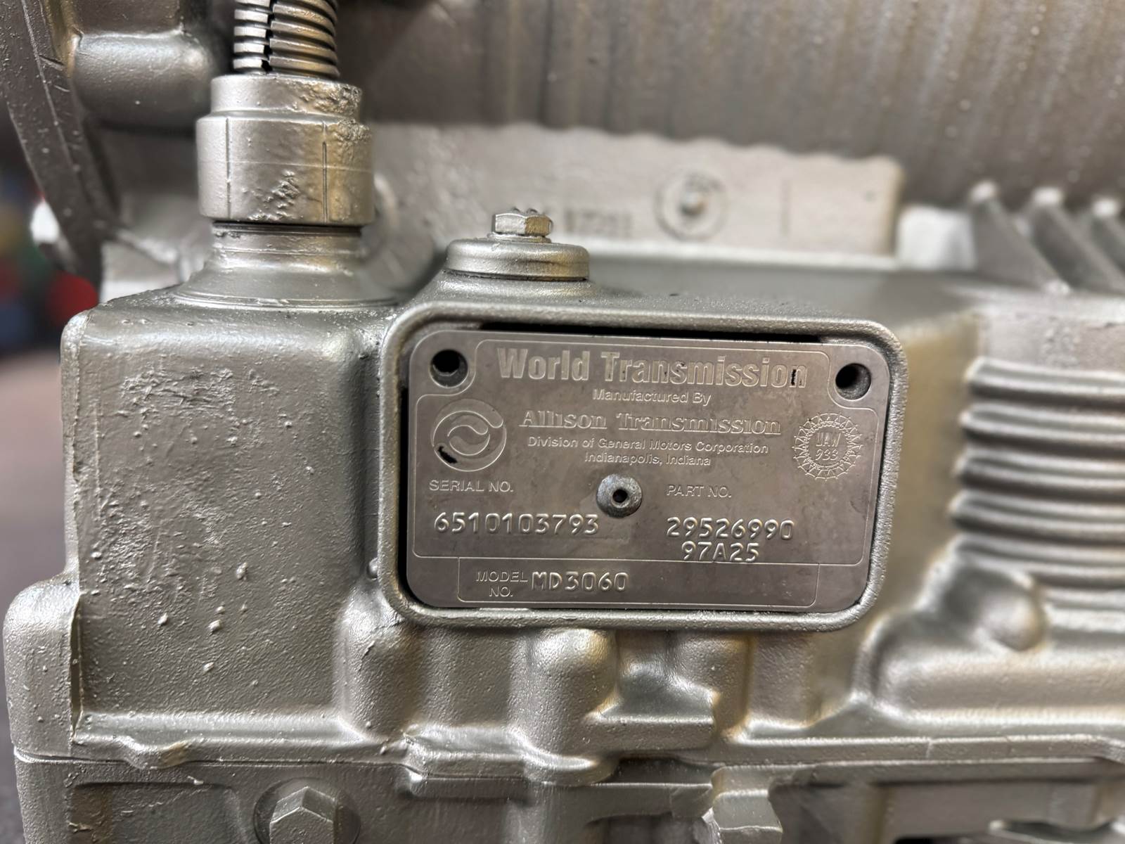 (GOOD USED & NO CORE) Allison MD3060 Transmission For Sale, Part No 29526990, 97A25, Casting # 29517211, Round Plug, Serial # 6510103793, Stock # 10137