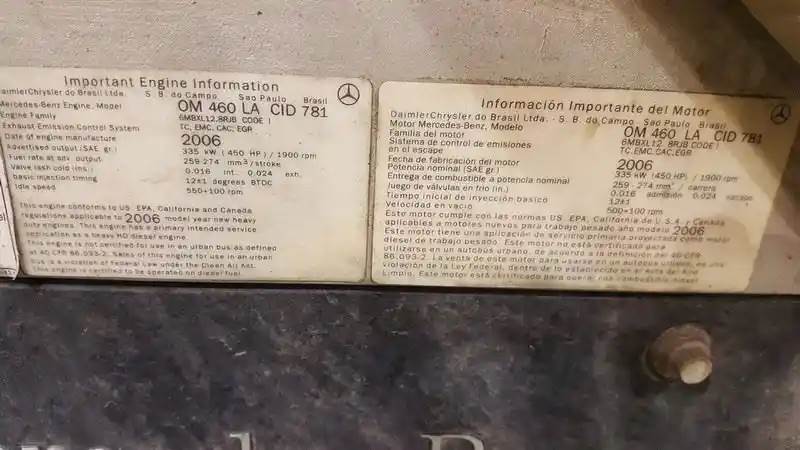 INCOMPLETE ENGINE, Serial#: 460926U0829407, Horse Power: 450 HP @ 1900 RPM, ARR/CPL: 12.8 LITRES, Part Make: MERCEDES
