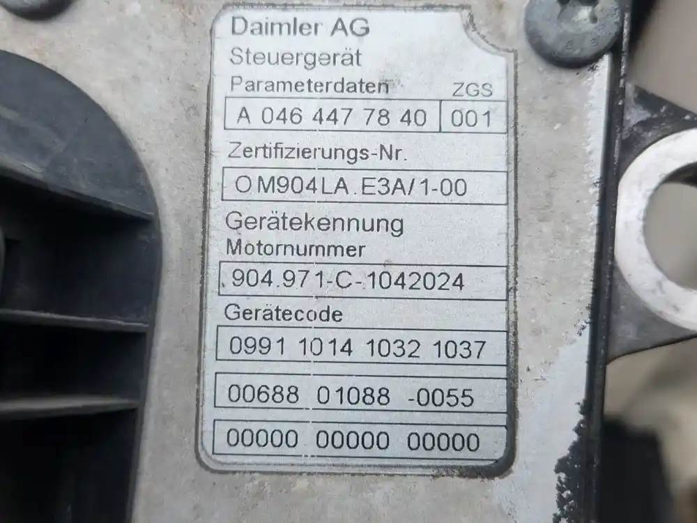 (Core) Mercedes MBE 904, ENGINE ECM- Part Number: A0464477840, Serial Number: 904-971-C-1042024, 2 Rectangular Plug, 1 Plug with 54 Pins, 1 Plug with 16 Pins, Reference images for condition, For more information about this item, give us a call. We ship Worldwide! (CRG HEAVY TRUCK PARTS) 929 W PULASKI HWY ELKTON, MD 21921, Serial#: 904-971-C-1042024, Casting#: 904-971-C-1042024
