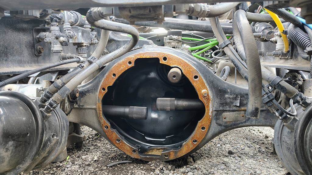 Meritor Front Rear Axle Housing, MD2014X, w/ Torque Rod Bracket, 10 Hole Pilot, Air Drum Brakes, 53.5" Inner Flange To Inner Flange, STD Track. P/N C703121M1729S. Removed From 2021 International Corporate Air/IROS Suspension.
