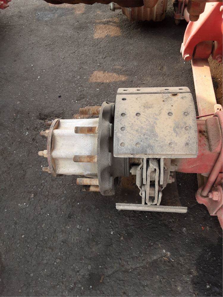 Meritor Rear Axle Housing, MR2014X, w/ Torque Rod Bracket, 10 Hole Pilot, Air Drum Brakes, ABS, Missing Driver Side Drum, Wide Track. Removed From Freightliner Airliner Suspension. HOUSING ONLY, DIFF SOLD SEPARATELY.