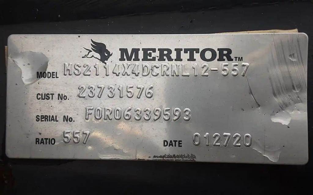 NEW Meritor Rear Axle Housing, MS2114X, 10 Hole Pilot, Air Drum Brakes, ABS. P/N MS2114X4DCRNL12557, S/N FOR06339593. Includes New Mack Springs.