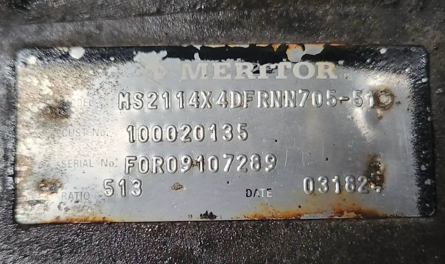 (Used) 2025 International MV607, DIFFERENTIAL HOUSING ONLY- Part Number: 100020135, Serial Number: FOR09107289, Make: Meritor, Model: MS2114X, Ratio: 5.13, Capacity: 20,000 Lbs, Suspension: Leaf Springs, For more information about this item, give us a call. We ship Worldwide! (CRG HEAVY TRUCK PARTS) 929 W PULASKI HWY ELKTON, MD 21921, Serial#: FOR09107289, Hub Bolts: 10, Suspension: Leaf Springs, Brake Type: Drum