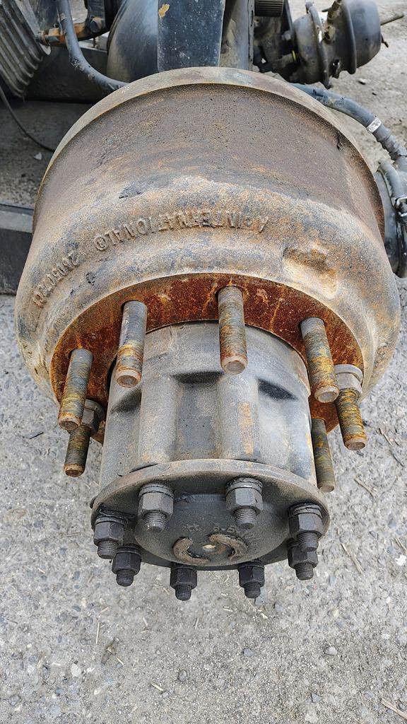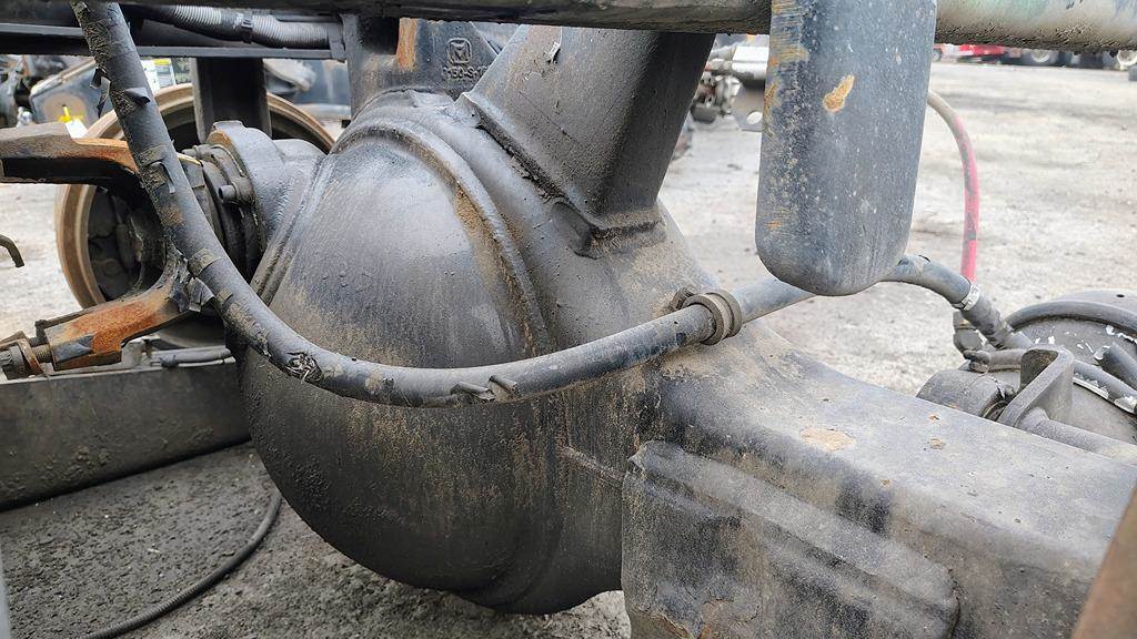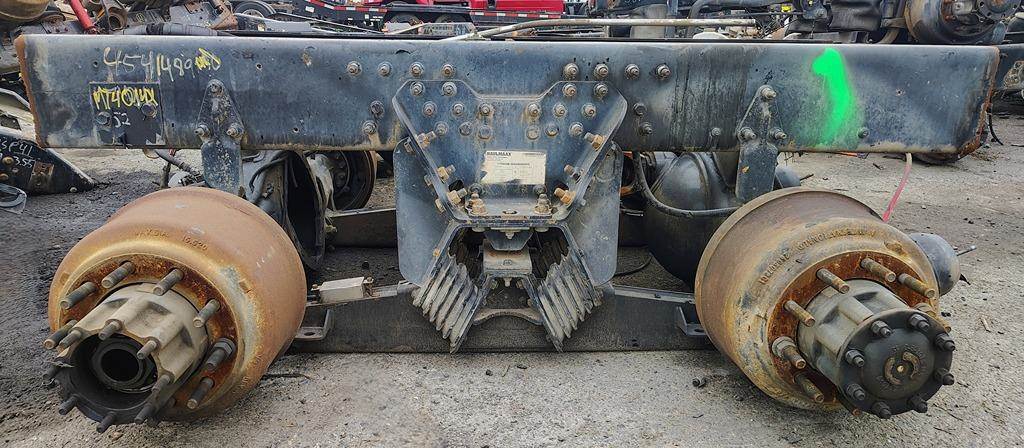 Hendrickson Haulmaax 40K Tandem Suspension Cutoff w/ Meritor MTL4014XH Housings, 10 Hole Pilot, Air Drum Brakes, ABS. Rear Housing Missing Both Axle Shafts. SUSPENSION w/ HOUSINGS ONLY, DIFFS NOT INCLUDED