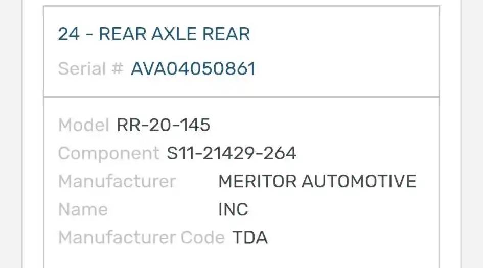 (Used) 2004 Sterling A9500, COMPLETE REAR REAR TANDEM- Part Number: S11-21429-264, Serial Number: AVA04050861, Make: Meritor, Model: RR20-145, Ratio: 2.64, Capacity: 20,000 Lbs, Hub Bolts: 10, Brake Type: Air Drum, Suspension: Air Suspension, For more information about this item, give us a call. We ship Worldwide! (CRG HEAVY TRUCK PARTS) 929 W PULASKI HWY, ELKTON, MD 21921, Serial#: AVA04050861, Ratio: 2.64, Casting#: AVA04050861