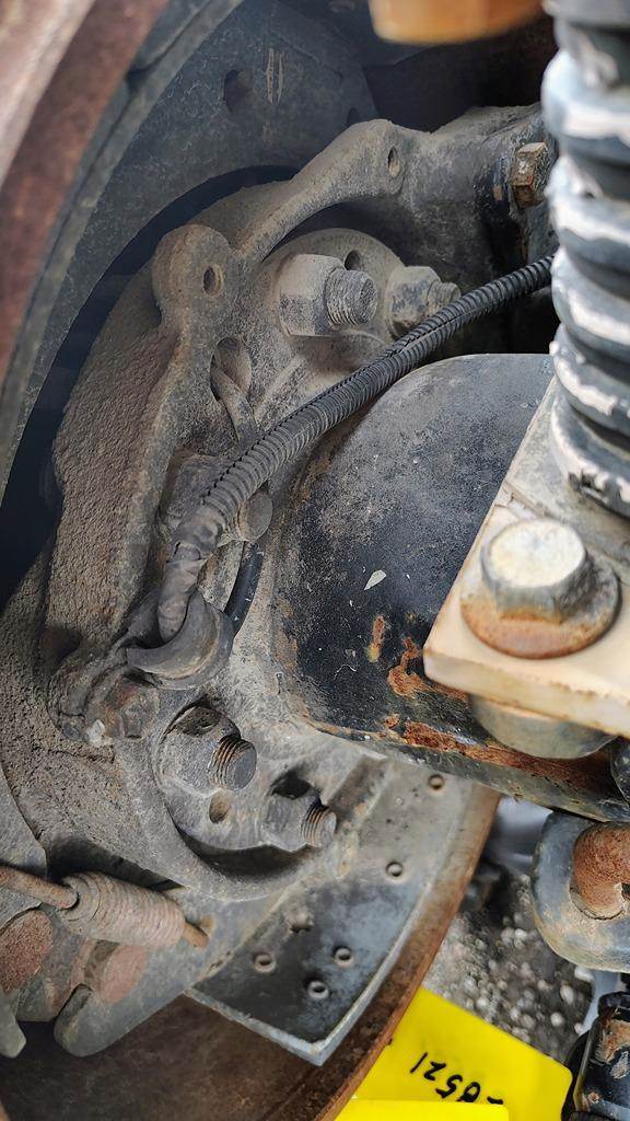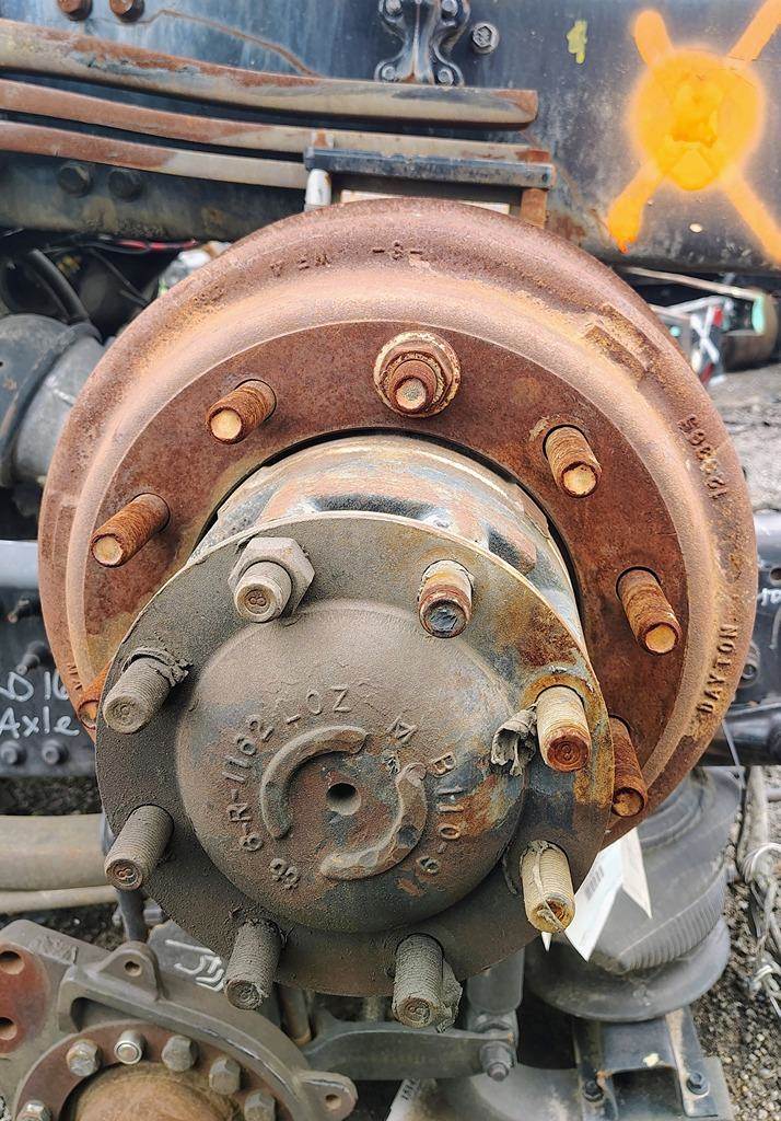 Meritor Rear Axle Housing, RR23160, w/ Torque Rod Bracket, 10 Hole Pilot, Air Drum Brakes, ABS, 53.5" Inner Flange To Inner Flange, STD Track. P/N RR23160NFN3345538. Removed From Volvo T-Ride Suspension.