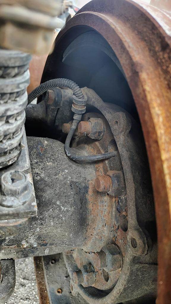 Meritor Rear Axle Housing, RR23160, 10 Hole Pilot, Air Drum Brakes, ABS, 53.5" Inner Flange To Inner Flange, STD Track. P/N A3121K1857. Removed From Volvo T-Ride Suspension.