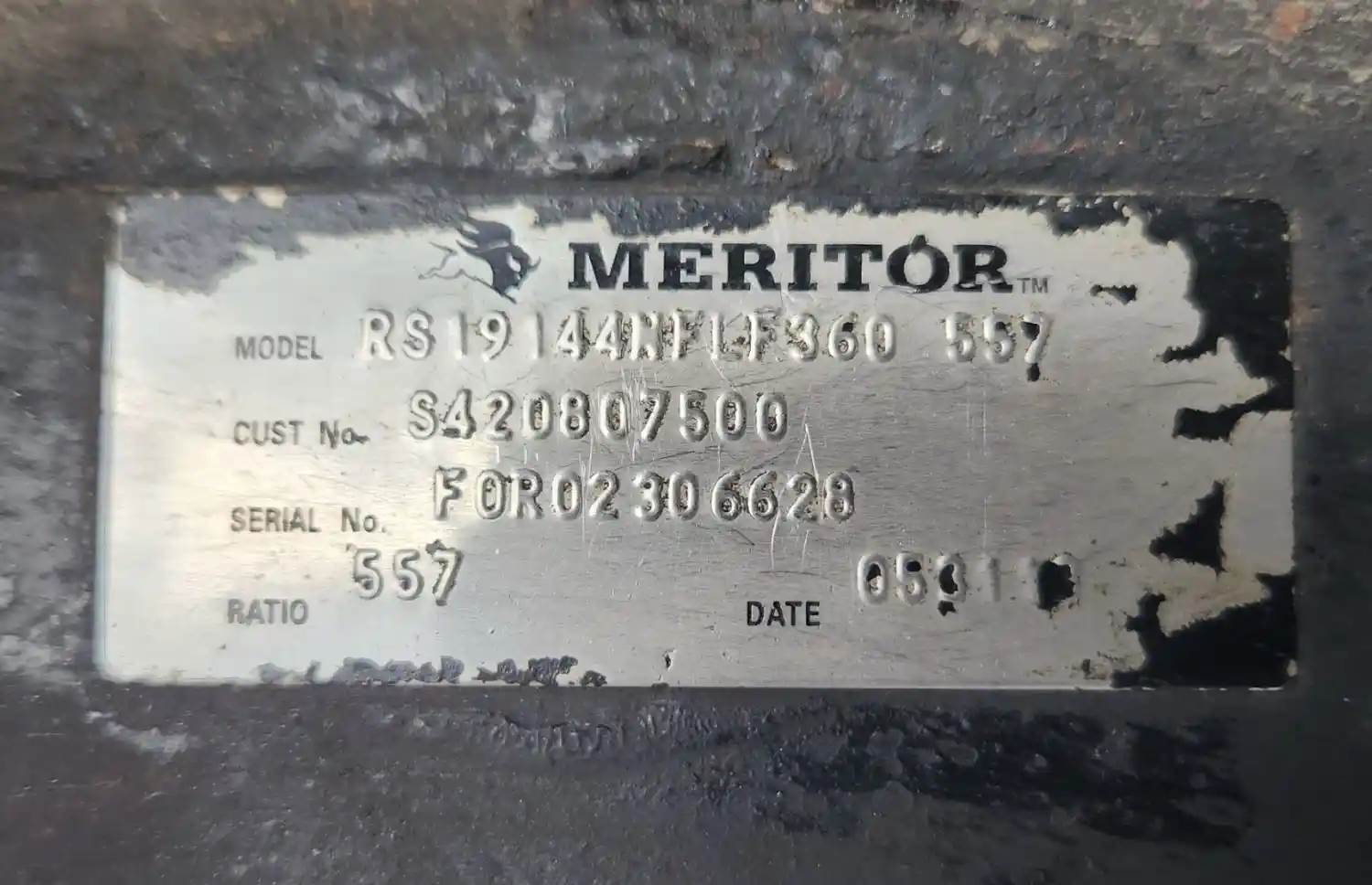 (Used) 2014 Hino 268, DIFFERENTIAL HOUSING ONLY- Part Number: S420807500, Serial Number: FOR02306628, Make: Meritor, Model: RS19144, Ratio: 5.57, Capacity: 19,000 Lbs, Suspension: Leaf Springs, Reference images for condition, For more information about this item, give us a call. We ship Worldwide! (CRG HEAVY TRUCK PARTS) 929 W PULASKI HWY ELKTON, MD 21921, Serial#: FOR02306628, Hub Bolts: 10, Suspension: Leaf Springs, Brake Type: Drum