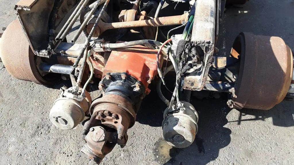 Hendrickson HN402 40K Tandem Suspension Cutoff w/ Diffs & Housings, Meritor RT40145 - 5.86 Ratio, 10 Hole Pilot, Air Drum Brakes, ABS, STD Track Width. P/N C43121M1729S, C273121P1966, S/N FOR02874044, AVH06086183.